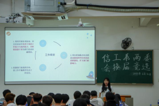 为保障我系两委会学生工作的连续性,充分发挥学生会工作的自主职能,加强学生干部的建设,6月30日晚七点半,信息工程系于实训四310教室开展两委会储备干部竞选演讲。出席竞选大会的有信息工程系学生科科长叶文美老师,两委会主席团成员,各部门部长以及19、20级各班班长团支书。