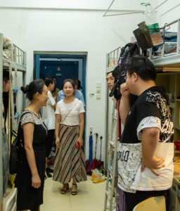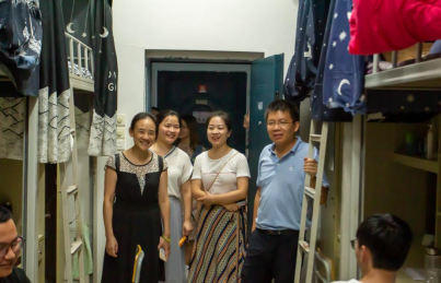 2121年9月4日晚7时,院党委副书记严绍裕、学院学工部部长蔡敏、学工部副部长陈友益、系主任华建祥、系党委副书记(主持工作)罗志斌、系部全体专兼职辅导员深入学生公寓,看望返校的老生和五年专接轨生。