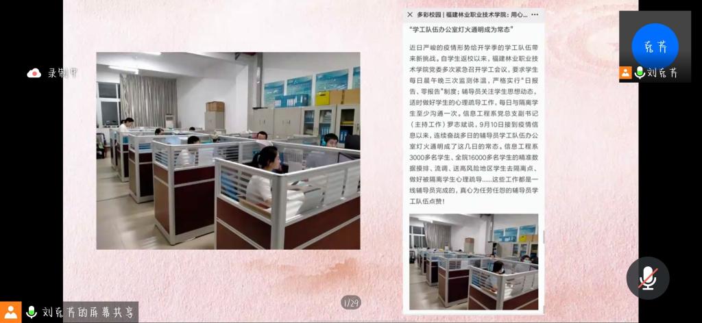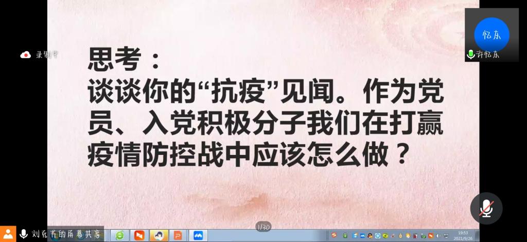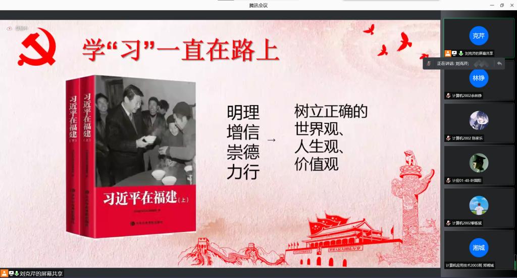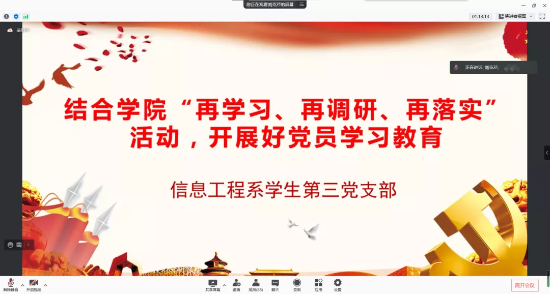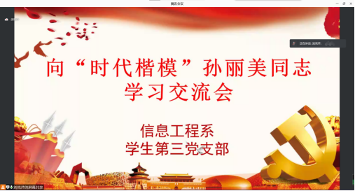 在疫情防控特殊时期,为扎实开展党员学习教育,9月26日晚信息工程系学生第三党支部在腾讯会议平台举行本月支部线上学习交流会议,会议由党支部书记刘克芹老师主持,支部全体师生党员、入党积极分子参会。