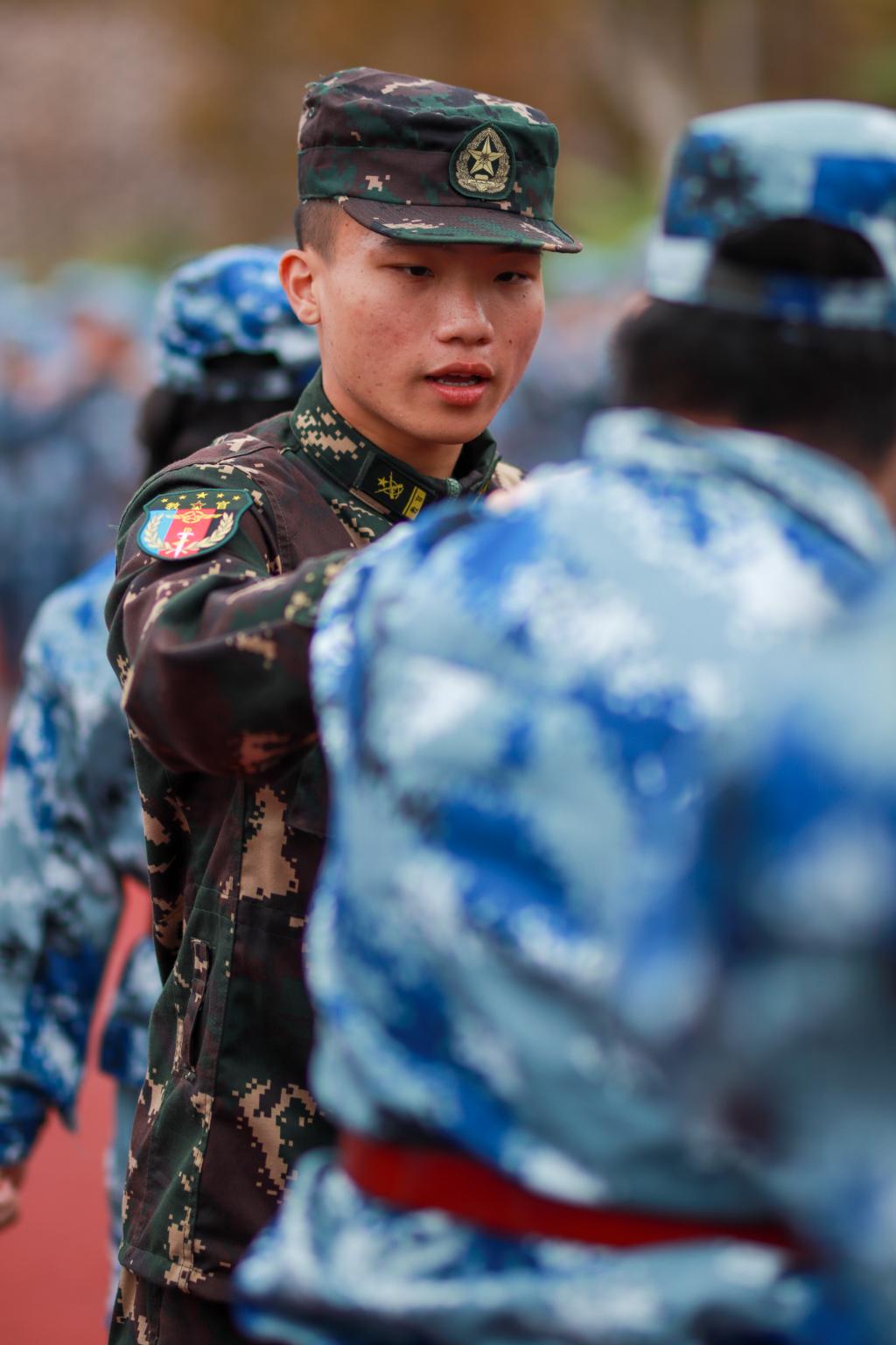 军训时间过半,同学们眼神坚毅,脸庞上已经褪去了先前训练的稚嫩,脸上坚定的面貌也证实了他们这些天的努力和教官的辛勤栽培,进步显而易见。虽然天气的寒冷令今年的军训与往年不同,但新生不负努力,挥洒泪水和汗水,努力训练,磨练着自己的身体和意志,征程还未结束,我们亦不停歇!
