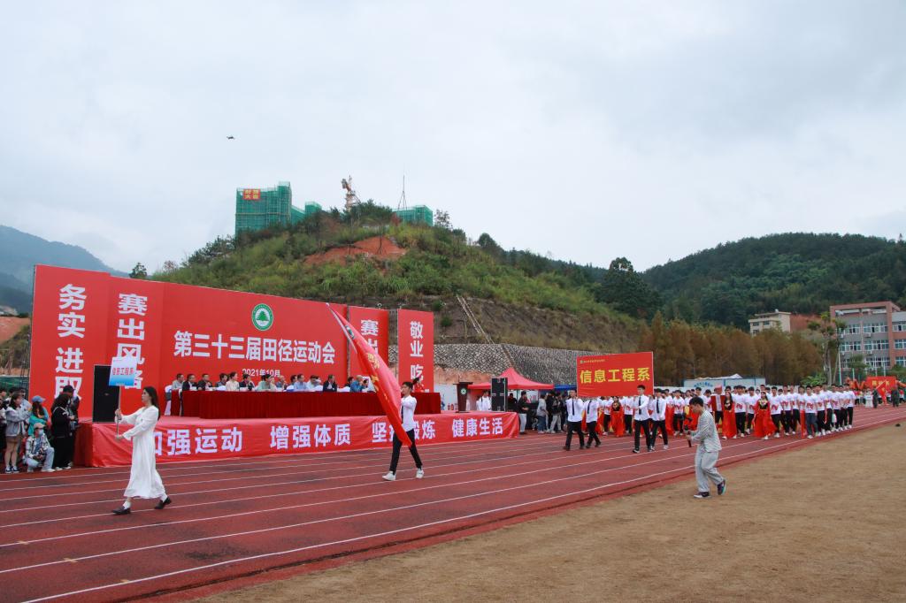 校园盛事师生共庆,秋日暖阳恰似春朝。10月28日上午,在这喜获丰收、桂花飘香的深秋时节,学院在江南校区体育场上举办第三十三届校运会开幕式,本次开幕式出席领导嘉宾有院党委书记万泉,院党委副书记、院长刘文开,学院各相关部门负责人,各系党总支书记、学生科长、辅导员以及学生观众代表,本次校运会开幕式由院党委副书记严绍裕主持。