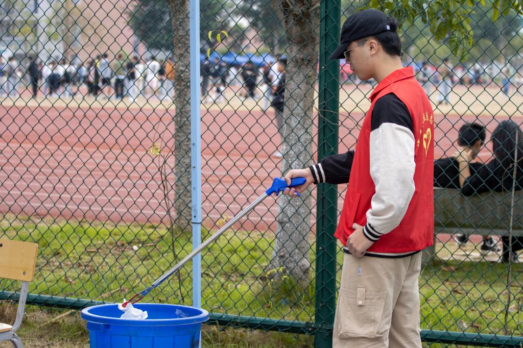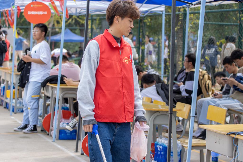 赛道旁,是志愿者忙碌的身影