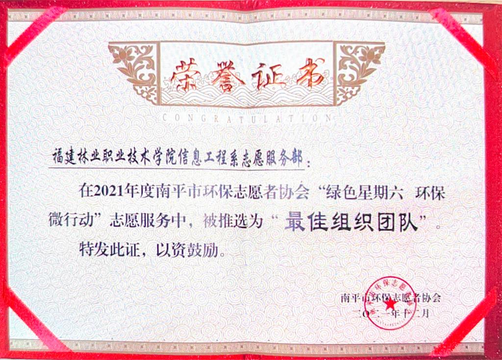 每周六定期举办“绿色星期六”微行动、南平市的环保活动 、科学放生行动、“保护母亲河,争当河小禹”、“关爱空巢老人”、“文明校园,我先行”等活动,受到社会各界一致好评。通过形式多样化的志愿者活动,让广大青年学子养成优秀品德,养成正确的人生观,价值观,世界观;通过不断地参与实践,引导广大团员青年以服务社会为目标,立足岗位、关心他人,成为倡导文明行为的先行者。