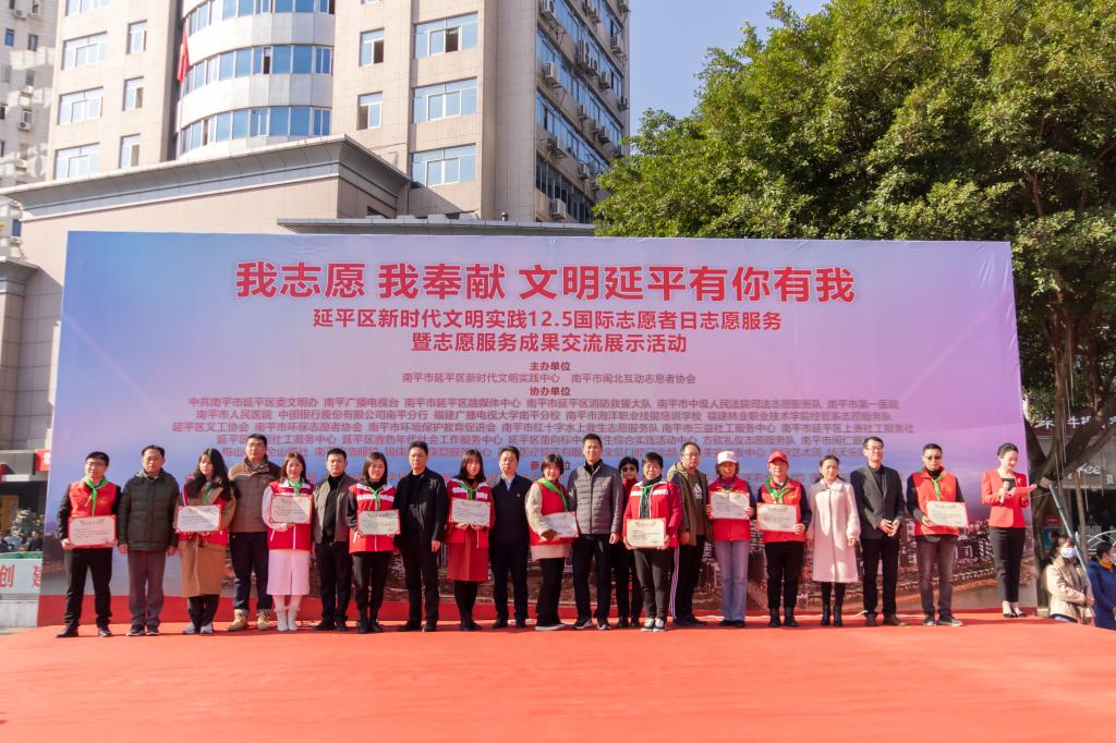 在第36个国际志愿者日,为大力弘扬“奉献、友爱、互助、进步”志愿服务精神,12月5日,由南平市延平区新时代文明实践中心和南平市闽北互动志愿者协会联合主办的延平区新时代文明实践12.5国际志愿者日志愿服务暨志愿服务成果交流展示活动在南剑州大剧院广场前举行,信息工程系受邀出席活动。