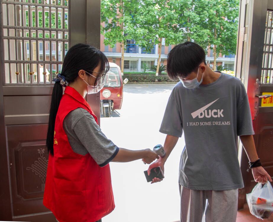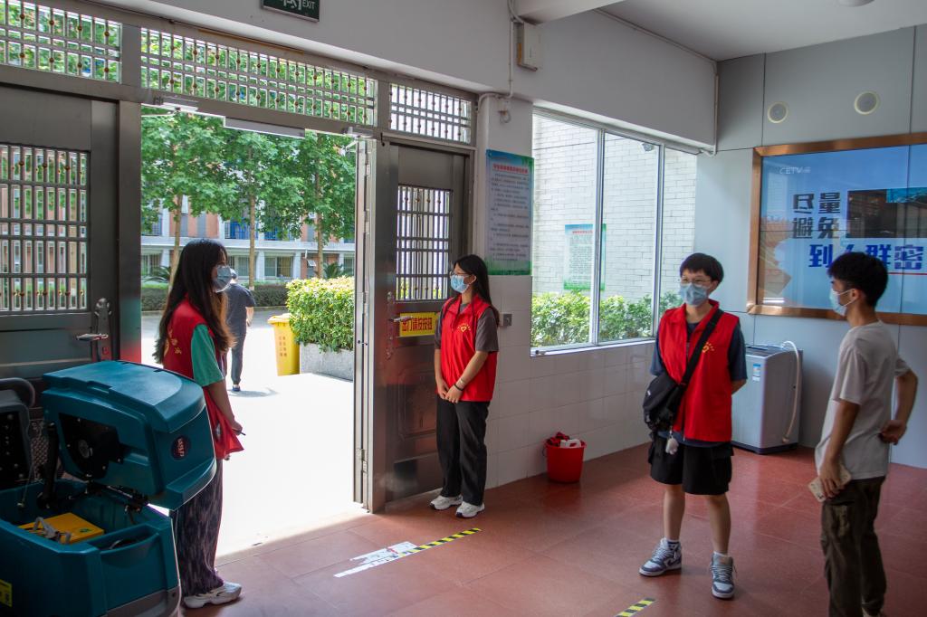 党员先锋岗党员、积极分子提醒学生佩戴口罩