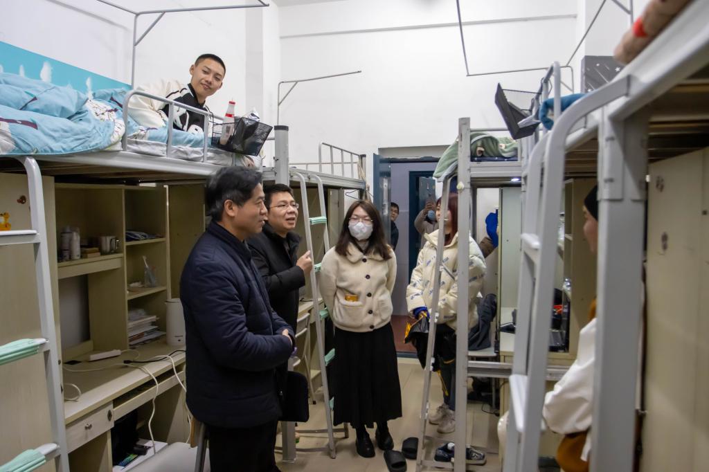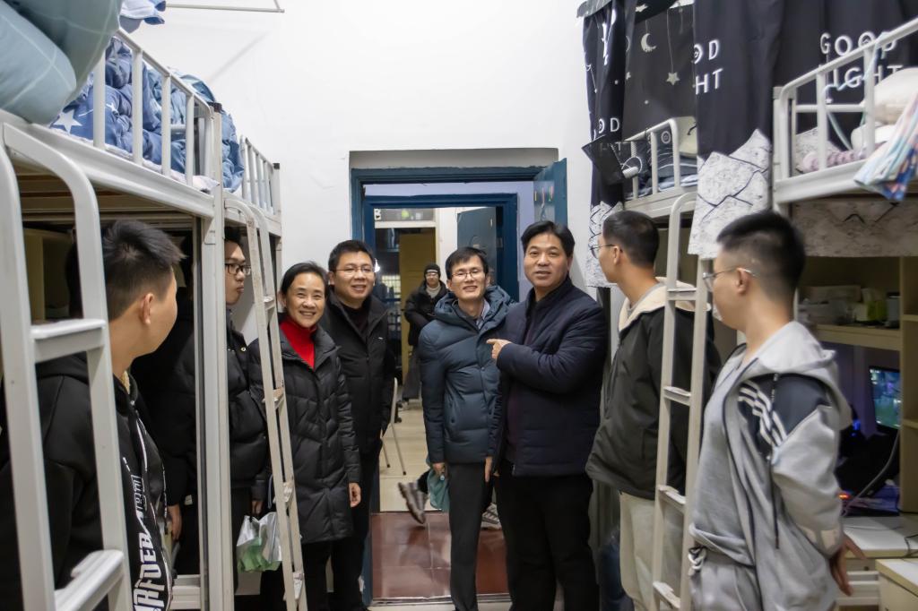 在走访过程中,严绍裕书记与返校同学展开了友好的交谈。同学们也对校领导的来访表示欢迎和感谢。严绍裕书记了解了同学们的寒假生活、学习情况后,强调了宿舍疫情防控、宿舍安全等问题,同时表示学校将尽最大努力,为大家的学习生活创造良好条件和环境,让同学们顺利成才。也希望同学们在新的一学期力争向上,展现当代大学生积极向上的精神面貌,继续勤奋刻苦,不负期盼嘱托。