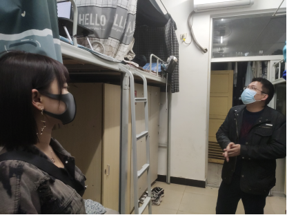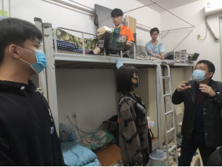 走访过程中,罗志斌书记与同学们进行了亲切的交流,为同学们详细介绍了院系疫情防控的相关规定和注意事项,并仔细询问同学们封闭式管理后的宿舍生活和学习情况,细心叮嘱同学们在自觉遵守疫情防控常态化管理的前提下,加强自身的身体素质,保持良好的心理状态和生活习惯,做好保暖御寒工作,并提醒同学们多与父母联系,封校不“封”心,共同营造安全温馨的宿舍与校园环境。