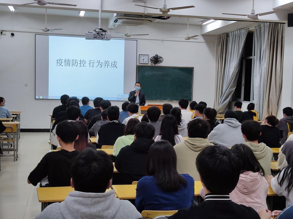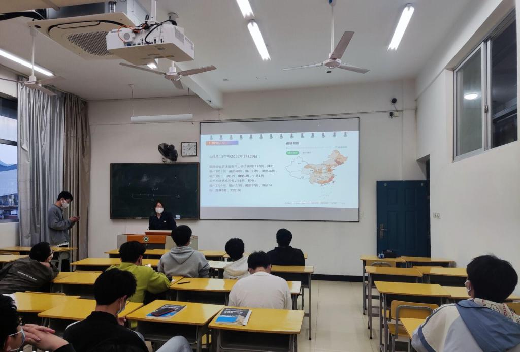班会伊始,各辅导员和同学们就当前全国疫情和福建省3月疫情累计确诊人数总览进行分析,希望同学们能够对国内及福建省的疫情现况形成客观、科学、深刻的了解。与此同时各辅导员针对新型冠状病毒的病发症状和传播途径进行了全方位的介绍和科普,叮嘱同学们在进出宿舍、教室务必佩戴好口罩,做好室内通风和宿舍卫生,并从多地高校爆发聚集性疫情的实际案例中汲取经验和教训,提醒同学们切勿掉以轻心。