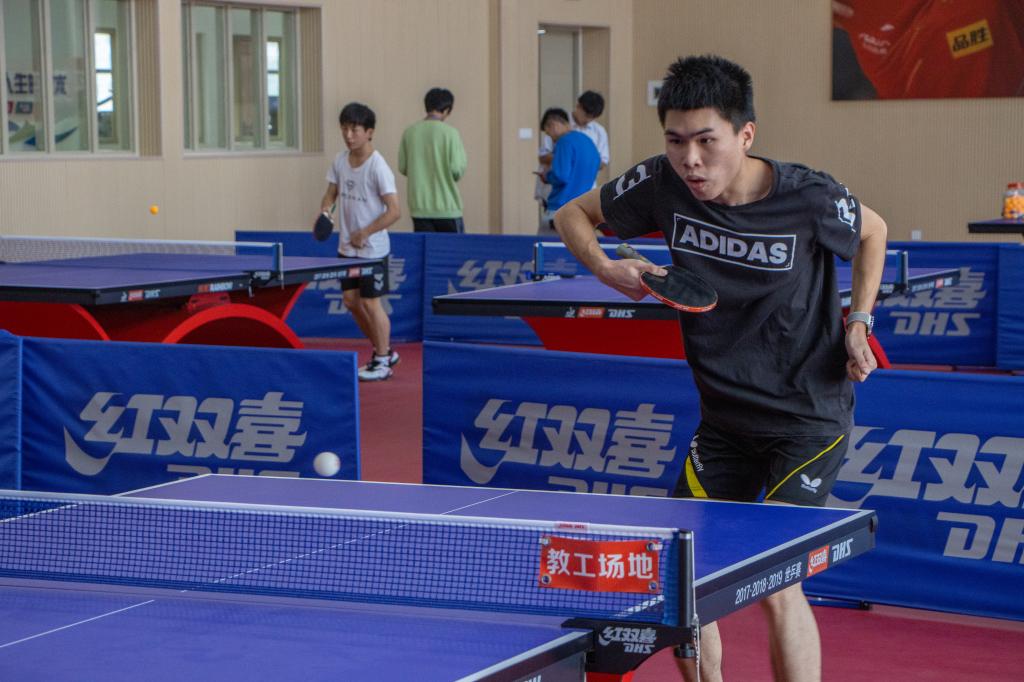 球员们哈腰侧身、紧握球拍、屏息凝神,气氛迅速紧张热烈起来。