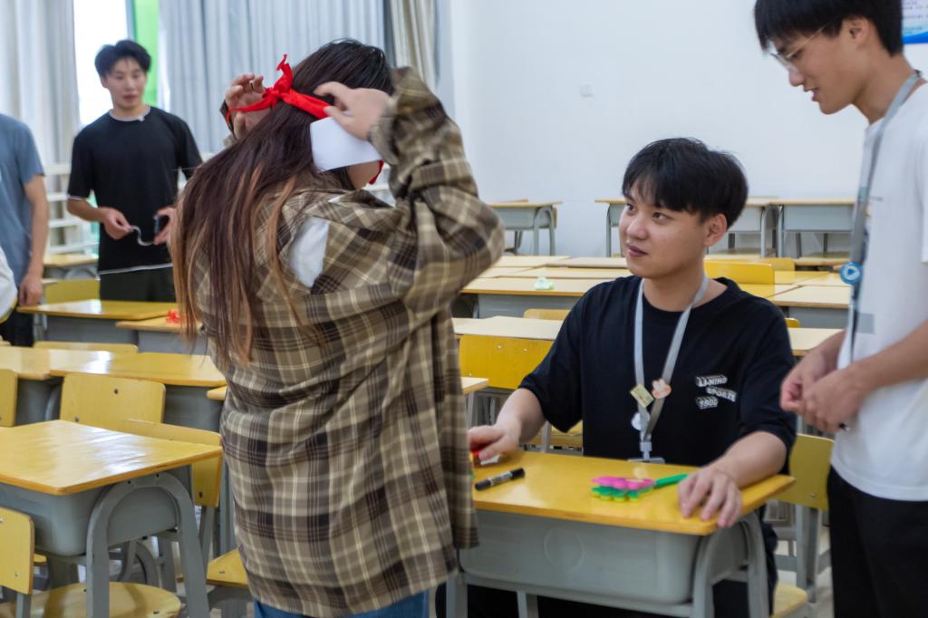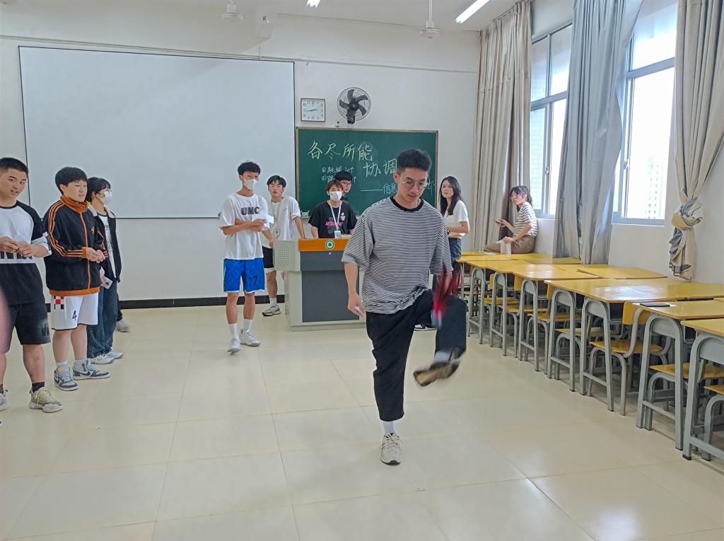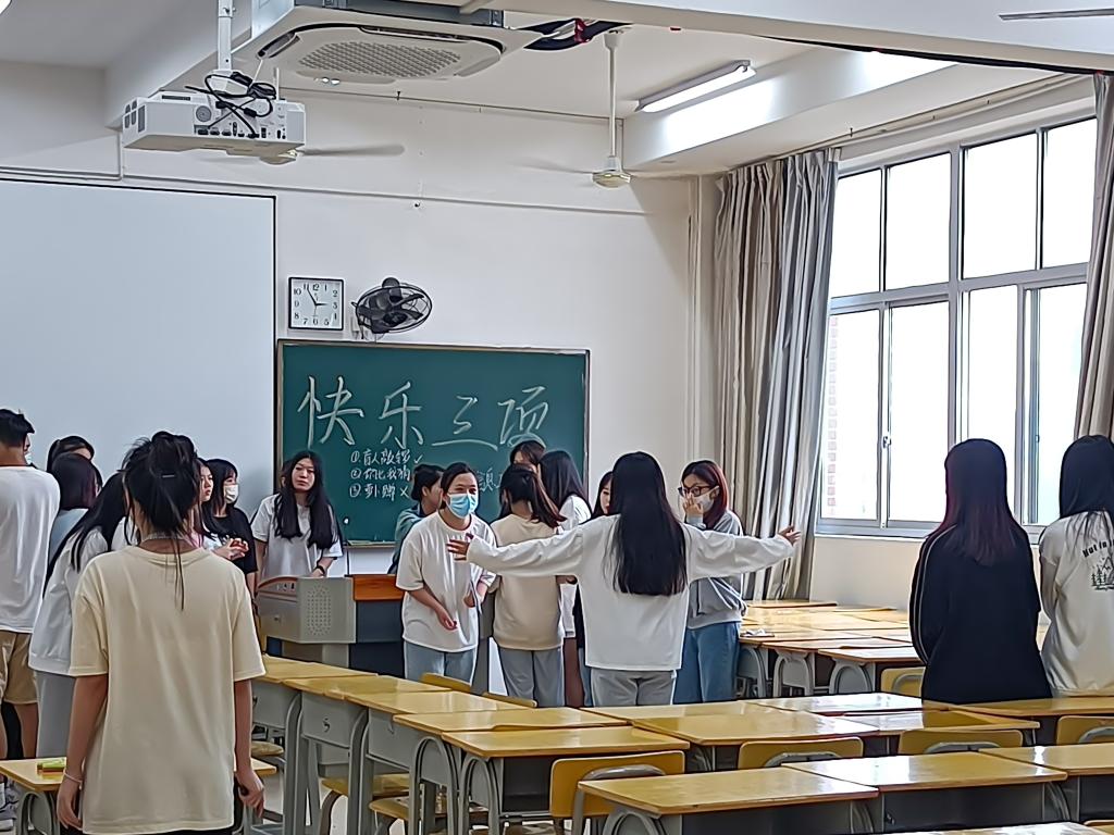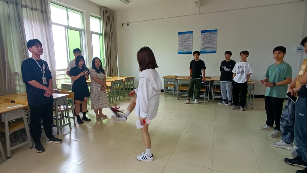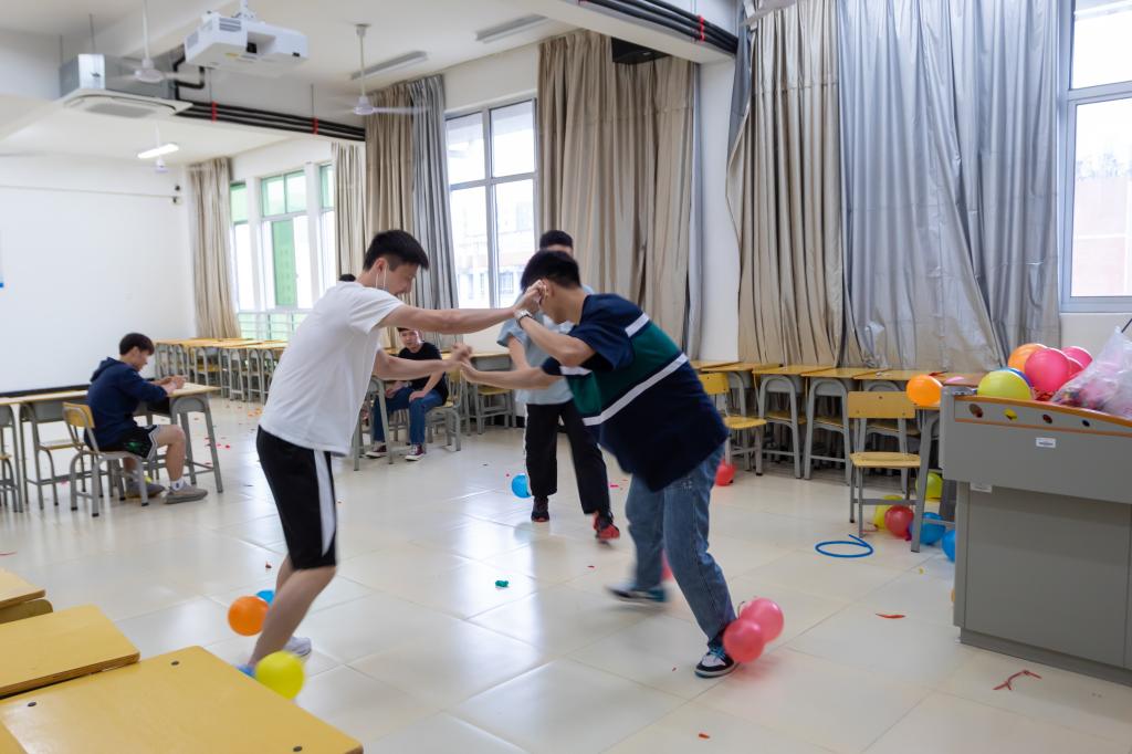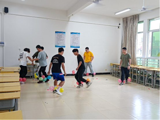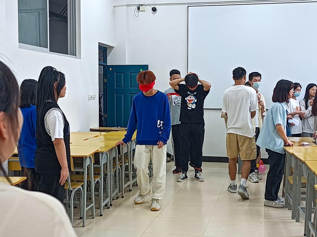 本次活动分别设在实训四605、705和707三个教室,游戏项目有各尽所能,协调发展踩气球、盲人敲锣、你画我猜、萝卜蹲等。