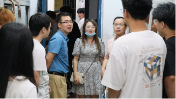 为深入了解2022级新生的入住情况,帮助新生尽快适应大学生活,9月12日晚,学院纪委书记林建斌、信息工程系党总支书记罗志斌、系主任华建祥、系党总支副书记叶文美以及系副主任官飞携系部全体新生辅导员深入学生公寓看望2022级新生。