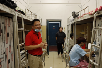 走访慰问中,林建斌书记就大学生的行为习惯养成、心理状态、学习生活等情况与学生们进行了面对面的亲切交谈,对新生提出来殷切的希望,希望同学们尽快转变角色,适应大学生的身份。并叮嘱同学们要做好宿舍卫生和内务整理,遵守宿舍规定,安全用电,确保疫情防控期间的宿舍环境安全,营造良好的文明校园氛围。