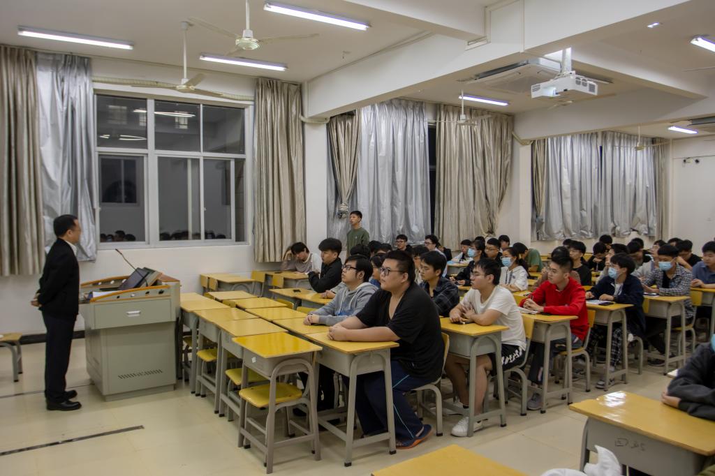 10月19日晚,院纪委书记林建斌在实训四305为信息工程系计算机应用技术2003班的全体同学上了一堂生动的形势政策课。