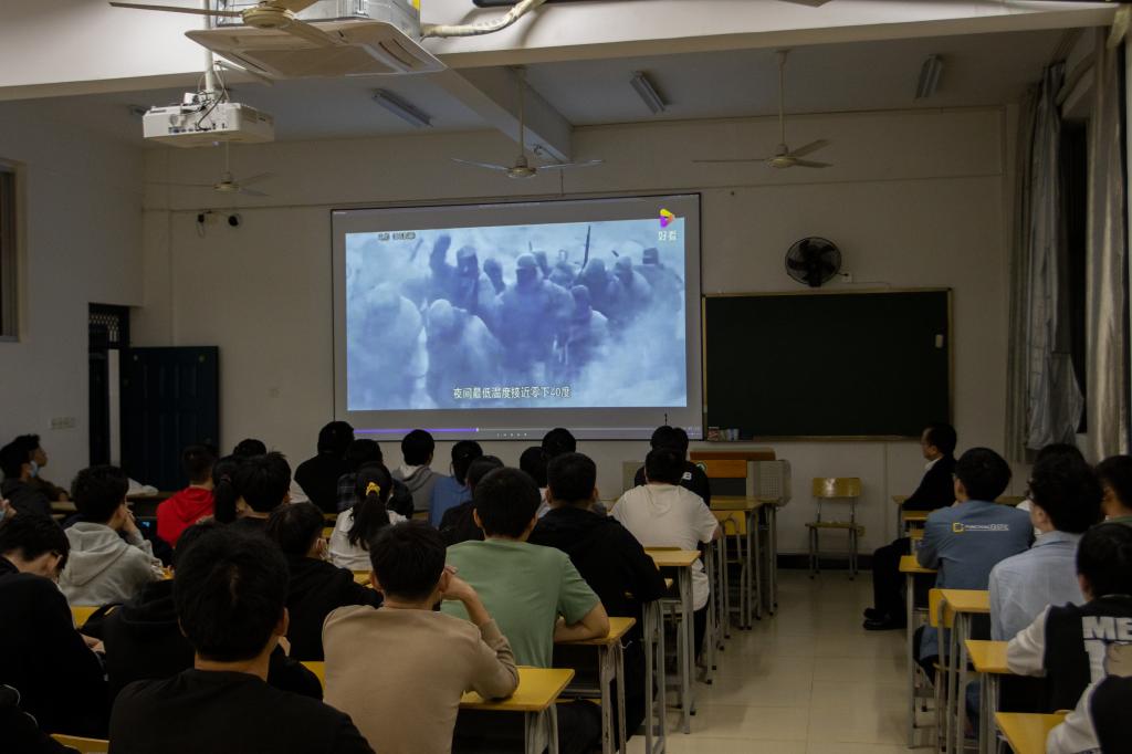 课上,林建斌书记为学生们讲解爱国主义教育影片《长津湖》的内容:在这次战役中,中国人民志愿军凭着钢铁意志和英勇无畏的战斗精神,征服了极度恶劣的环境,打退了美军最精锐的王牌部队,收复了“三八线”以北的东部广大地区,彻底粉碎了麦克阿瑟圣诞节前占领整个朝鲜的美梦,扭转了战场态势。这场战役也就此成为朝鲜战争的拐点。毛泽东评价说,志愿军第九兵团此次在东线作战,在极困难的条件下,完成了巨大的战略任务。
