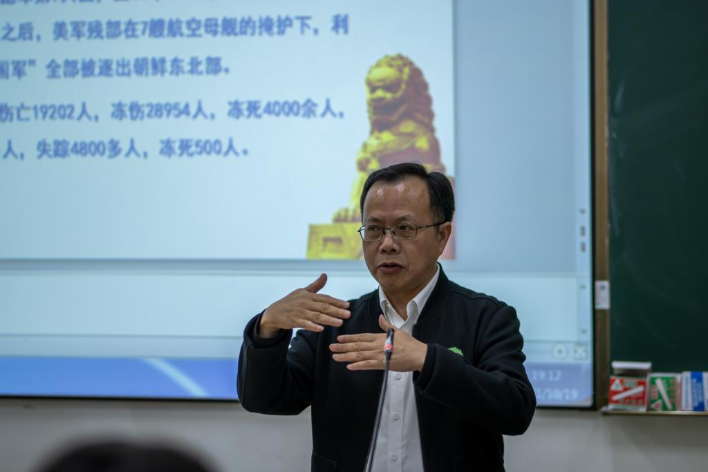 最后,林建斌书记为同学们做了总结:抗美援朝精神,是马克思列宁主义、毛泽东思想同正义战争伟大实践相结合的产物,是人民军队宗旨、本色和作风的体现,是中华民族不畏强暴、敢于斗争的历史传统的弘扬,是中国人民极其宝贵的精神财富。