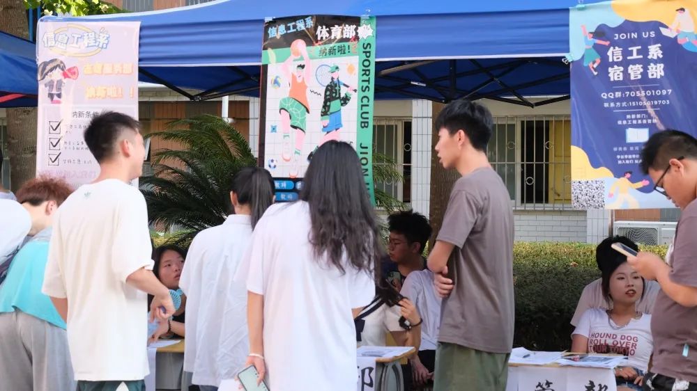 活动当天各部门的负责人早早在5号楼下摆好摊位,卖力吆喝、展示技能、激情演讲,大家纷纷使出“十八般武艺”吸引萌新的注意吸引着更多志同道合的小伙伴的加入!