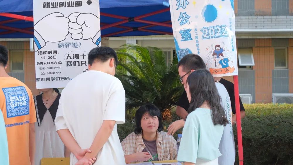两委会各部门百花齐放,为秋日的校园增添了无限风姿,时间只负责流逝,不负责与你成长,而我们期待与你同行!行走在纳新现场,双向奔赴的同时,总能在偶尔间瞥到一些精彩瞬间,总有一个画面惊到或者暖到你!