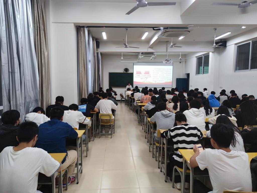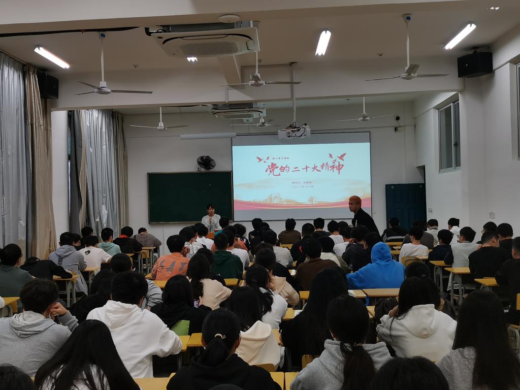 逐梦百年梦,奋斗向未来,中华民族伟大复兴号巨轮再启航。党的二十大是在全党全国各族人民迈上全面建设社会主义现代化国家新征程、向第二个百年奋斗目标进军的关键时刻召开的一次十分重要的大会,是一次高举旗帜、凝聚力量、团结奋进的大会,在党和国家历史上具有划时代、里程碑意义。为深入学习宣传贯彻党的二十大精神,11月20日,信息工程系学生第一党支部书记郑燕丽作题为《学习二十大精神,凝聚青年新力量》专题党课,52期和53期入党积极分子参加党课学习。