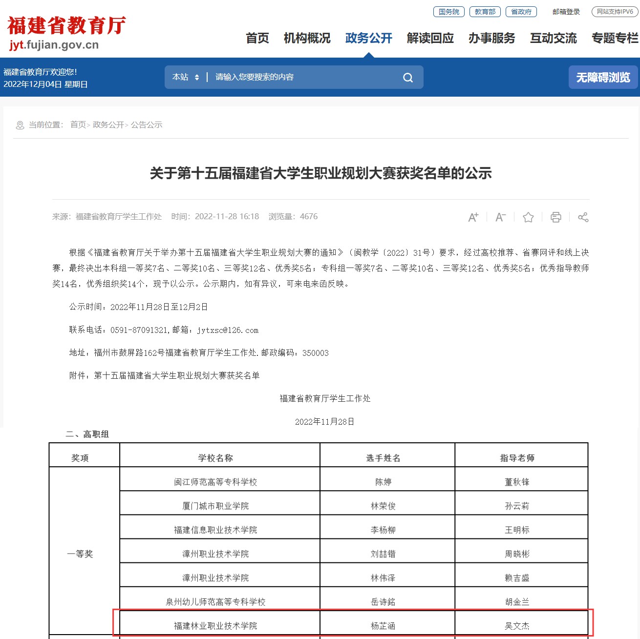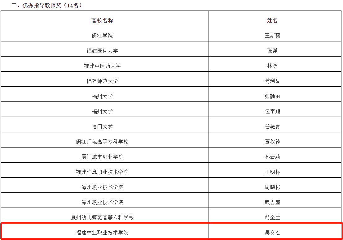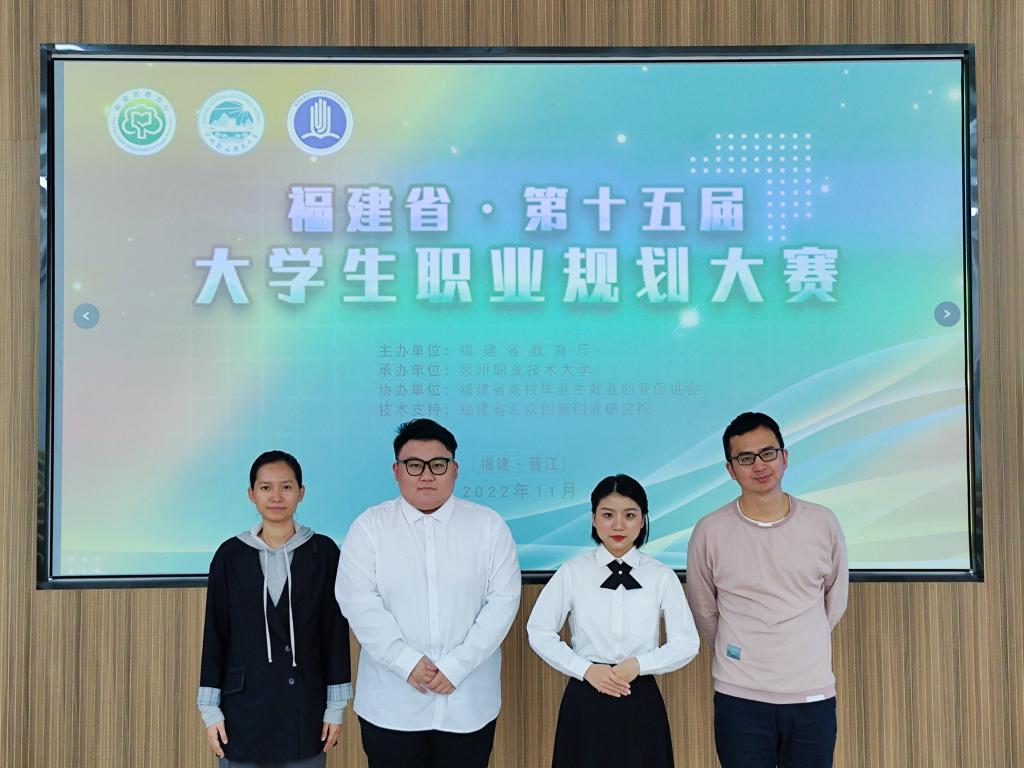 11月26日,由福建省教育厅主办、泉州职业技术大学承办、福建省高校毕业生就业创业促进会协办的第十五届福建省大学生职业规划大赛总决赛落下帷幕,我院选送的两件作品分别取得不错成绩,其中我系学生科科长兼团总支书记吴文杰指导学生杨芷涵在第十五届福建省大学生职业规划大赛中荣获一等奖,吴文杰老师荣获优秀指导教师奖,我院荣获优秀组织奖。
