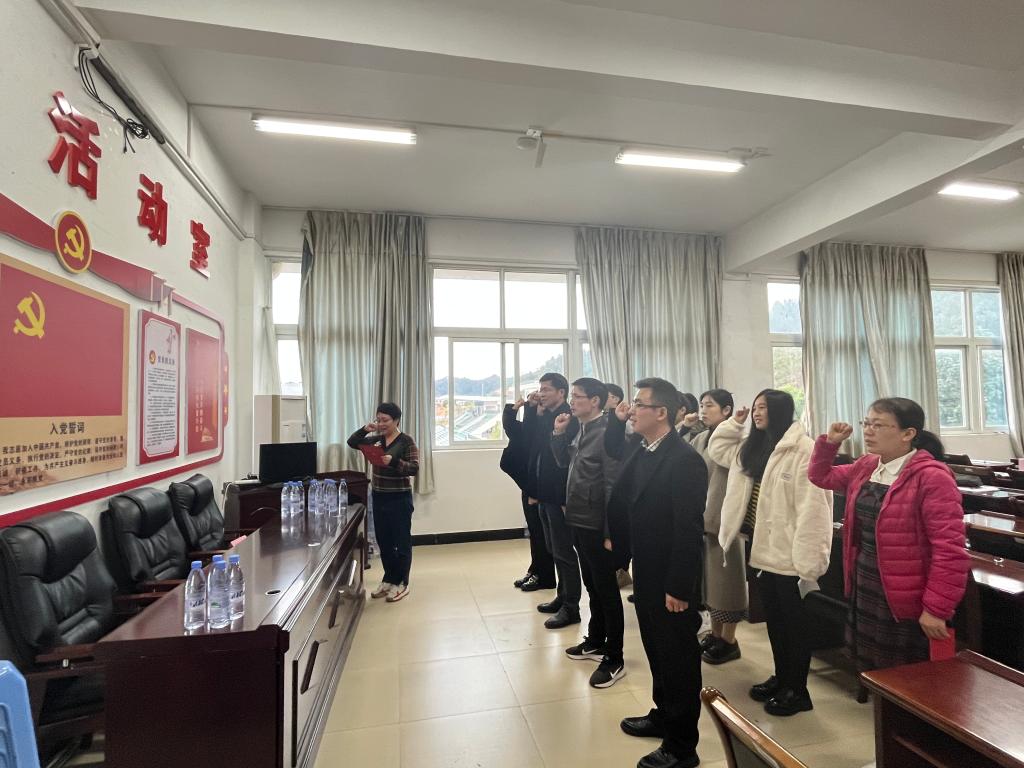 最后张晓璐老师带领支部全体党员重温入党誓词。“组织入党一生一次,思想入党一生一世。”张晓璐老师希望全体党员时刻牢记入党誓词,自觉遵守党的章程,终身践行入党誓词,把入党时的追求和现在的思想实际对照起来,始终保持昂扬向上的奋斗激情,学习贯彻党的二十大精神,努力提高本领,不断为推动党的伟大事业添砖加瓦。