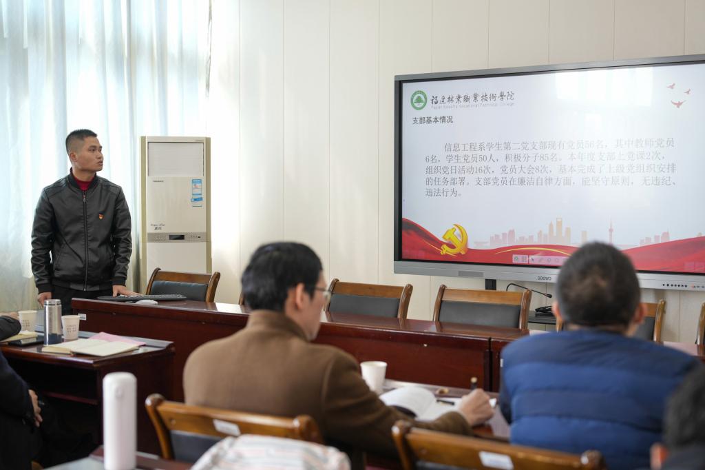 根据闽林院党〔2022〕46号《中共福建林业职业技术学院委员会关于做好2022年度党总支书记和党支部书记抓基层党建述职评议考核工作的通知》的精神和要求,2月21日上午,信息工程系党总支于实训三408会议室召开2022年度信息工程系党支部书记抓基层党建述职评议考核会议。信息工程系党政领导班子成员、系党总支委员、系组织员、各支部书记参加了会议,副院长谢金生莅临会议,艺术传媒系党总支专职组织员欧阳昭勇受院组织部委派,莅临会议观摩指导。会议由系党总支副书记叶文美主持。