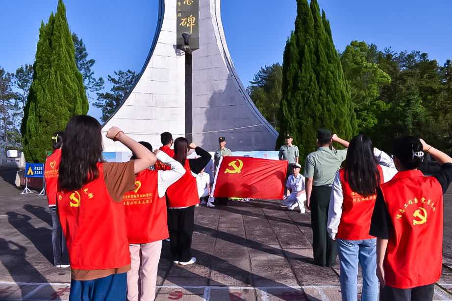 青山埋忠魂,山河念英魂。下午16时许,40余名参与祭扫的师生党员和青年志愿者怀着无比崇敬的心情到达南平市九峰山革命纪念碑,在巍然耸立的人民英雄纪念碑前举行了庄重肃立的悼念仪式。全体师生整齐排开,集体肃立,退伍军人代表苏睿、郑成梁、吴斌、吴铭义同志为革命烈士敬献花篮。在耸立的纪念碑前,全体师生着装整齐,表情庄重,脱帽默哀,表达对革命先烈的敬意与告慰。默哀后,信息工程系党总支副书记叶文美老师和团总支书记吴文杰老师分别为烈士整理挽联和宣读祭文,全体师生逐一为烈士献上师生共同制作的花束与千纸鹤,致敬英雄事迹,赓续先烈遗志,传承先烈精神。信息工程系专职组织员谢婉欣老师带领全体参加祭扫的师生党员,在人民英雄纪念碑前庄重地重温入党誓词,铮铮誓言响彻于青山之间。
