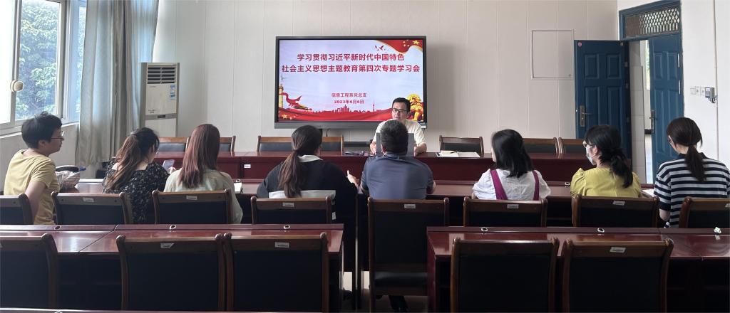 为深入开展学习贯彻习近平新时代中国特色社会主义思想主题教育,学习领会习近平总书记关于教育的重要论述,6月6日上午,信息工程系党总支在实训三会议室召开主题教育第四次专题学习会。会上,信息工程系党总支委员、团总支书记、学生科科长吴文杰以“为党育人 为国育才”为题作主题教育党课,系党政领导班子成员、各支部书记、支部委员与会共同学习。