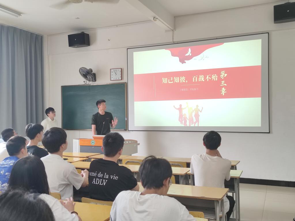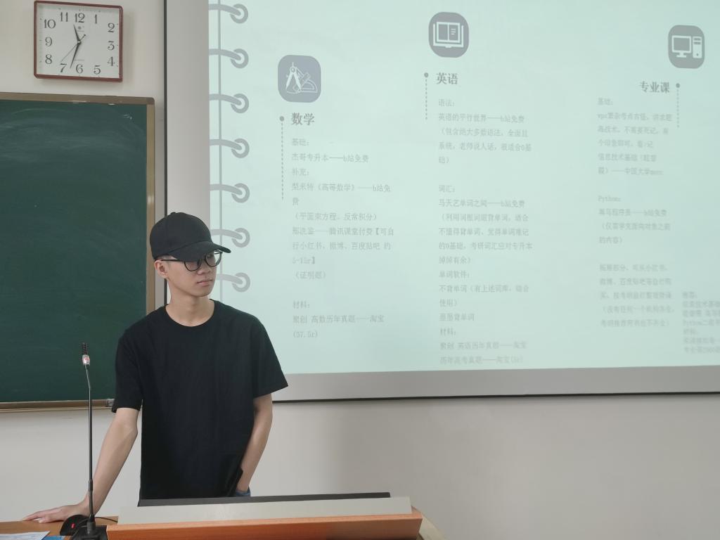 活动中,三位优秀学生代表结合自身备考经历和升学路上的所思所想所感,从考试要求、院校选择、科目题型、复习策略、心态调整等方面进行多角度、深层次、全方位的经验分享。王宇注重分享网上各平台的优质免费课程、相关辅导资料以及不同阶段的时间分配;黎栋斌分析了考试题型、各学校的分数线,讲解了自己的复习方法;陈家乐则侧重从具体题目出发,详细解析重点考点,强调了熟悉考试真题的重要性。