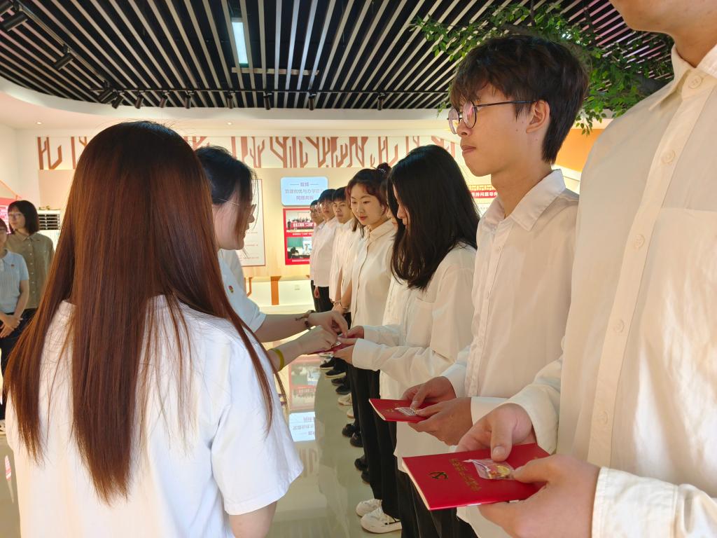 支部教师党员林珍、李思凤为12名预备党员颁发党章和党徽,这不仅是对他们身份的一种象征,更是对他们责任的一种提醒。学生党员深切感受到党支部的关心与关怀,也表示将在接下来的生活里铭记入党誓词,不忘初心,牢记使命,坚定理想信念,时刻严格要求自己。