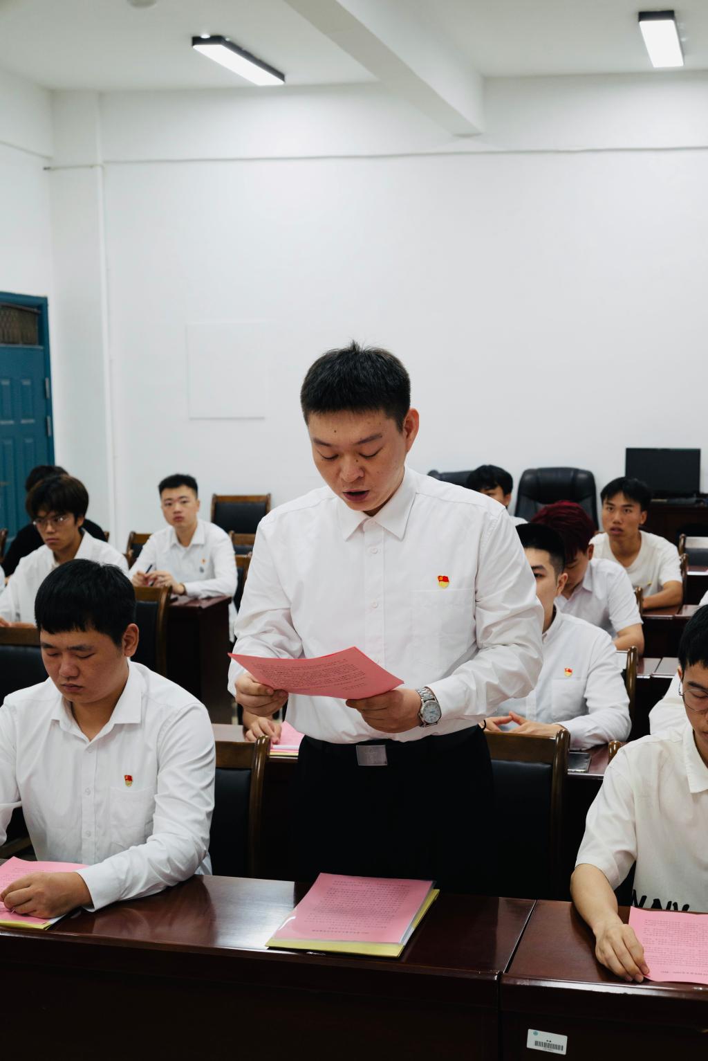 在庄严的氛围中,由教师党员带领,全体毕业生党员佩戴党员徽章,面向党旗举起右拳,在字字铿锵中重温入党誓词。一句句坚定有力的誓词,激励每一位党员进一步坚定理想信念,永葆对党忠诚的政治品格。再话一次初心,不仅是对个人入党动机的深刻反思,也是对全体党员的心灵洗礼。