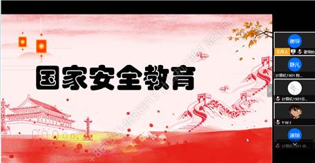 各班级积极开展线上国家安全日主题班会,主要从国家安全教育日设立的概况、掌握国家安全基本知识、真实案例学习、相关法律法规摘录、疫情防控等方面进行讲述,通过主题班会,以国家安全观为指导,紧密结合疫情防控任务,进一步帮助学生理解国家安全教育日的含义,有利于提高学生维护国家安全的法律意识和疫情防控意识,引导学生将总体国家安全观贯穿抗疫全过程。