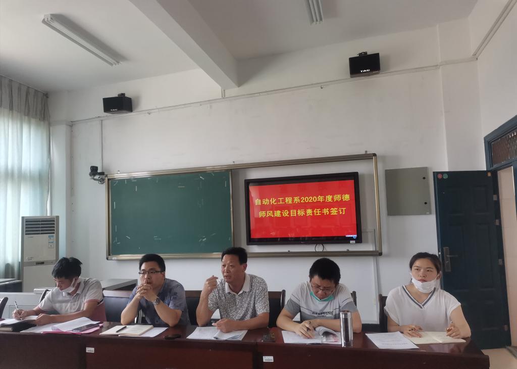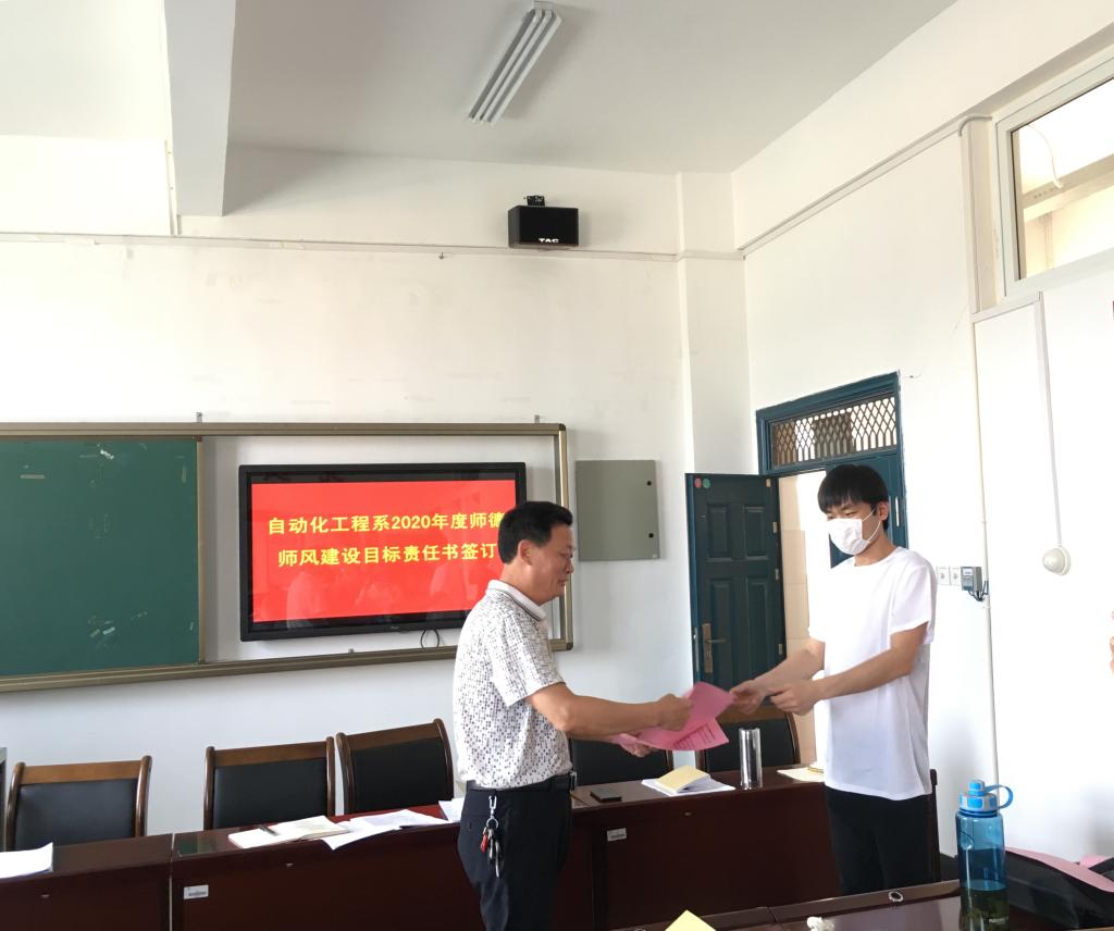 随后,全系教职工签订了《自动化工程系2020年度师德师风建设目标责任书》,各教研室主任、辅导员签订了《自动化工程系2020年度安全稳定目标管理责任书》。吴书记和华主任强调各位教师签订责任书,就要履职尽责,强化自身工作作风建设,严格落实各项有关规定,把工作落到实处,为系部的发展做出贡献。