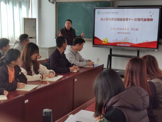 党的十九届六中全会是在“两个一百年”奋斗目标历史交汇关键节点上召开的一次重要会议。为推进党史学习教育,信息工程系党总支副书记罗志斌(主持工作)作为宣讲人于12月14日在实训三408会议室开展专题党课,所在支部师生党员、入党积极分子到场聆听。