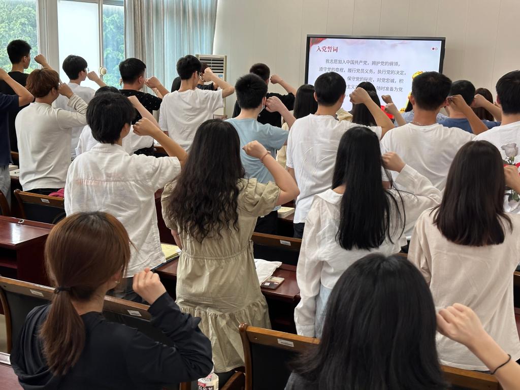 全体毕业生党员在支部书记郑燕丽的带领下,面向鲜红党旗,庄严地举起右手,共同重温入党誓词。大家回忆入党经历,围绕个人成长、工作经历、对党性的感悟,分享自己入党的心路历程,用朴素的语言、真挚的情感表达了爱党爱国的热情。党员们在铮铮誓言中重温入党初心,对比今天的行动,将更加坚定为共产主义事业奋斗终身的决心。