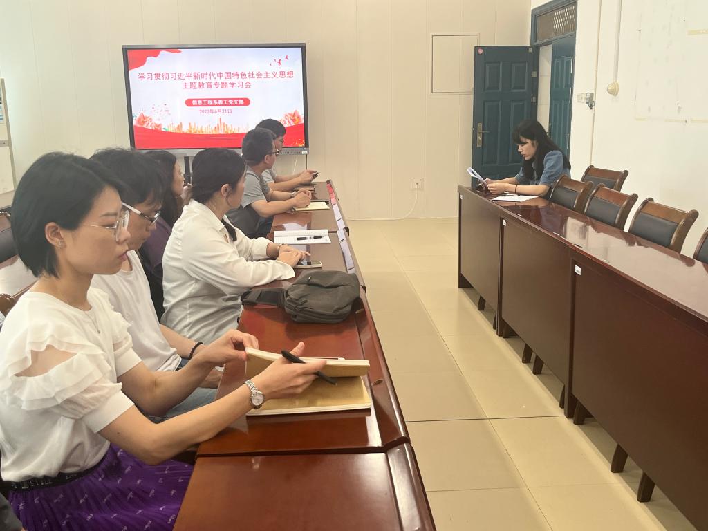 为深入开展学习贯彻习近平新时代中国特色社会主义思想主题教育,贯彻落实中共南平市委印发《关于实施“深学争优、敢为争先、实干争效”行动的工作方案》,深入学习廖俊波同志等先进典型,大力发扬斗争精神、专业精神、实干精神、团结精神,激励广大党员对标先进、担当作为,6月21日上午信息工程系教工党支部在实训三408会议室开展学习贯彻习近平新时代中国特色社会主义思想主题教育学习会暨学习廖俊波同志优秀品质专题研讨会。支部全体党员参加,学习会由教工党支部宣传委员江晨琳主持。