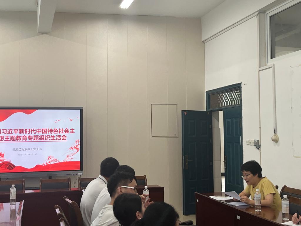 根据《中共福建林业职业技术学院委员会学习贯彻习近平新时代中国特色社会主义思想主题教育工作提示》要求,2023年8月28日,信息工程系教工党支部在信工楼408会议室开展主题教育专题组织生活会。会议由支部书记张晓璐主持,支部全体党员参加,副院长谢金生同志以普通党员身份参加了会议。