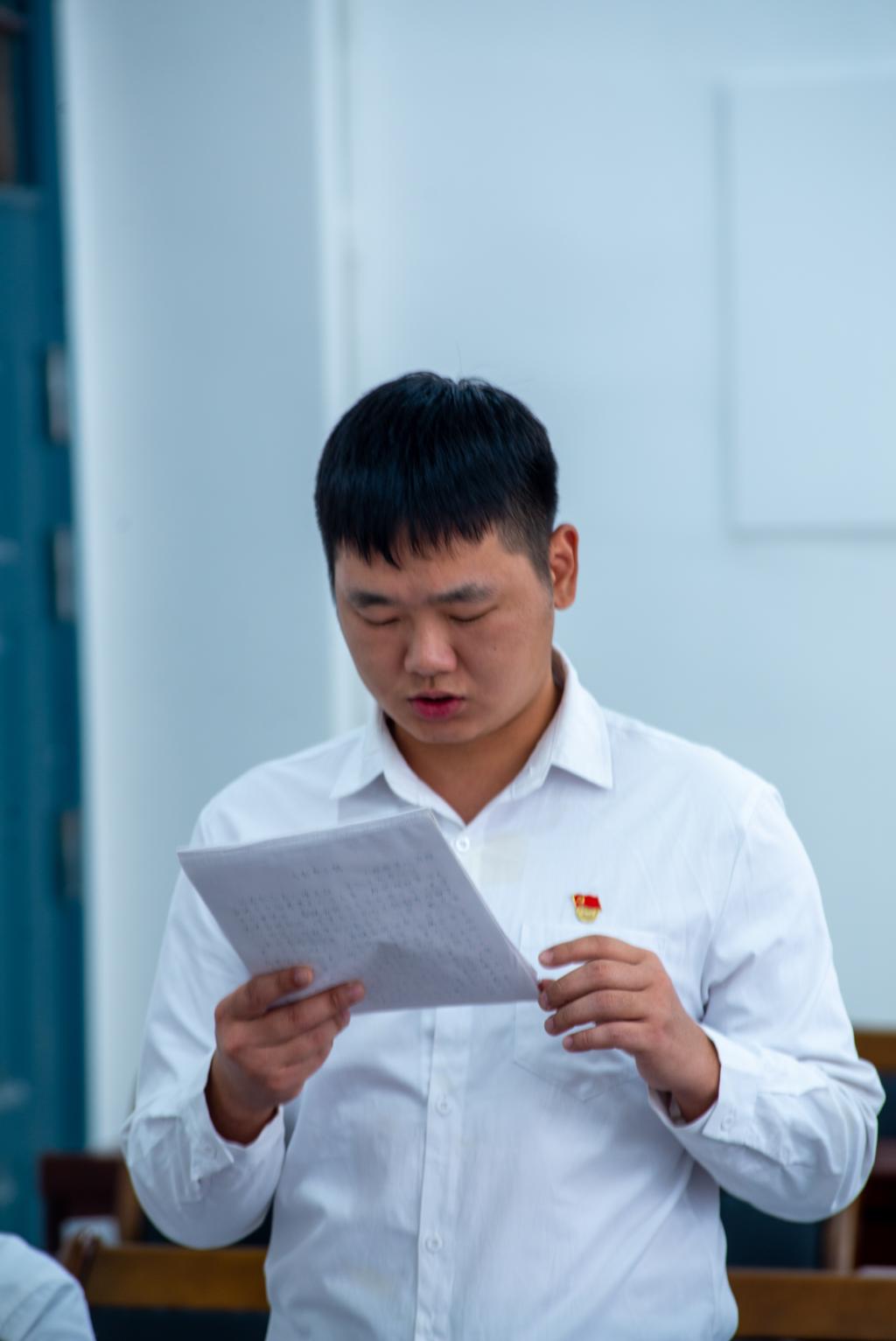 会议伊始,支部书记郑燕丽、陈雅佳老师带领学生党员面向党旗,重温入党誓词:“我志愿加入中国共产党,拥护党的纲领,遵守党的章程,履行党的义务,执行党的决定,严守党的秘密,对党忠诚,积极工作,为共产主义奋斗终身,随时准备为党和人民牺牲一切,永不叛党。”全体党员右手握拳庄严地宣誓,用自己铿锵有力的声音来重温入党誓词,用不可动摇的眼神彰显他们对党的忠诚,为共产主义事业奋斗的决心。
