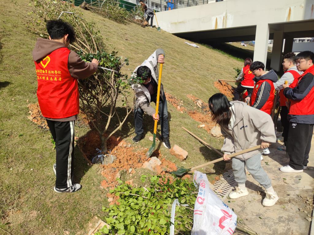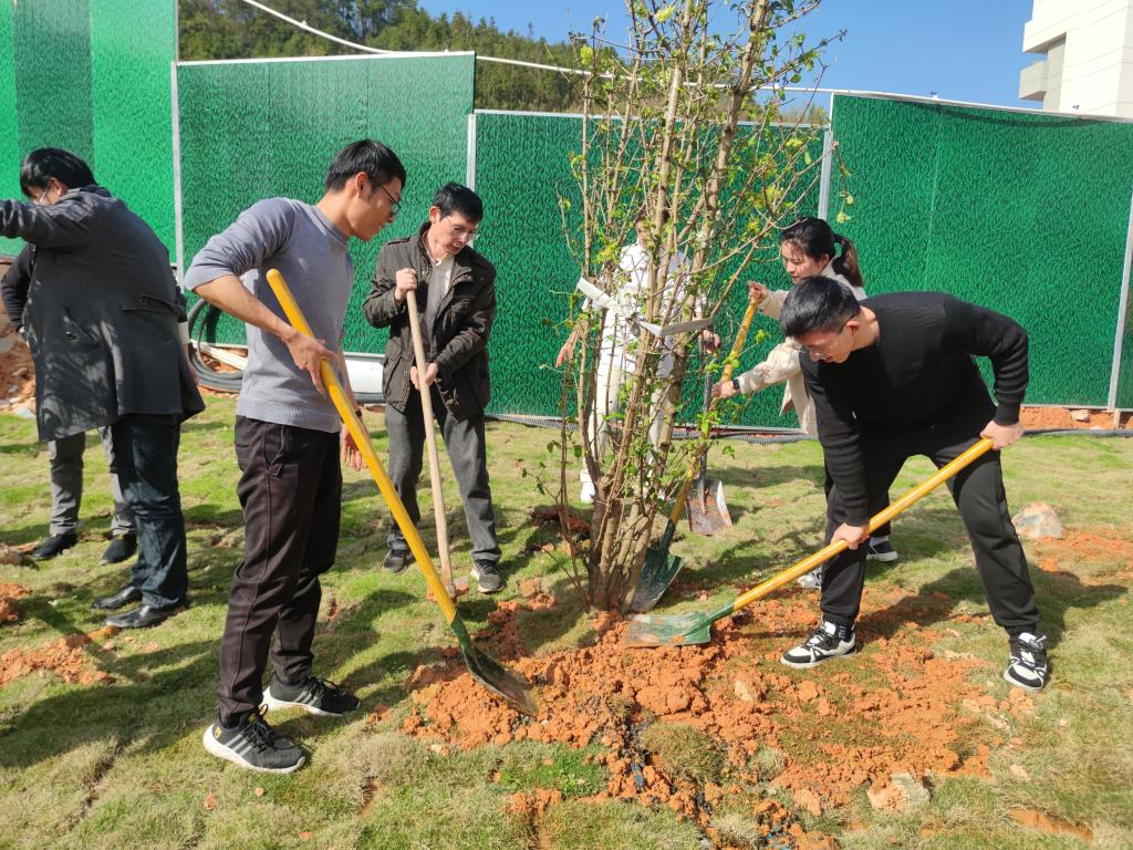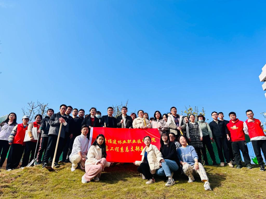 孟春之月,盛德在木,又是一年植树好时节。为全面贯彻落实党的二十大精神,践行习近平生态文明思想,引导广大师生树立生态文明意识,加强生态文明建设,3月12日下午,信息工程系党总支积极响应学院号召,在副院长谢金生、系党总支副书记(主持工作)叶文美、系主任华建祥的带领下,信息工程系全体教职工和学生志愿者们前往智造楼后开展“共建美丽校园 优化育人环境”植树活动。