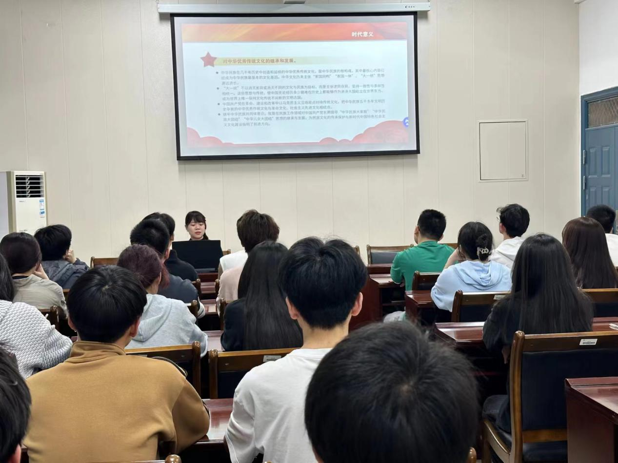 首先,支部书记郑燕丽从“铸牢中华民族共同体意识”的由来、意义、如何铸牢中华民族共同体意识、习近平总书记关于加强和改进民族工作的重要思想四个方面进行详细讲述。她指出,作为新时代的大学生,不仅需要扎实的专业知识,更要有意识地承担起中华民族伟大复兴的历史重任。她鼓励同学们要坚定理想信念,积极参与国家的发展建设,为中华民族伟大复兴贡献青春力量。