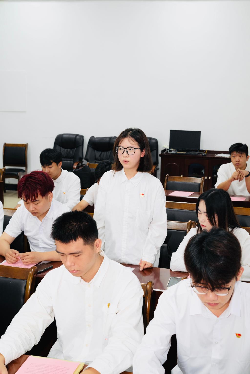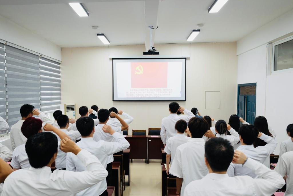 在庄严的氛围中,由教师党员带领,全体毕业生党员佩戴党员徽章,面向党旗举起右拳,在字字铿锵中重温入党誓词。一句句坚定有力的誓词,激励每一位党员进一步坚定理想信念,永葆对党忠诚的政治品格。再话一次初心,不仅是对个人入党动机的深刻反思,也是对全体党员的心灵洗礼。