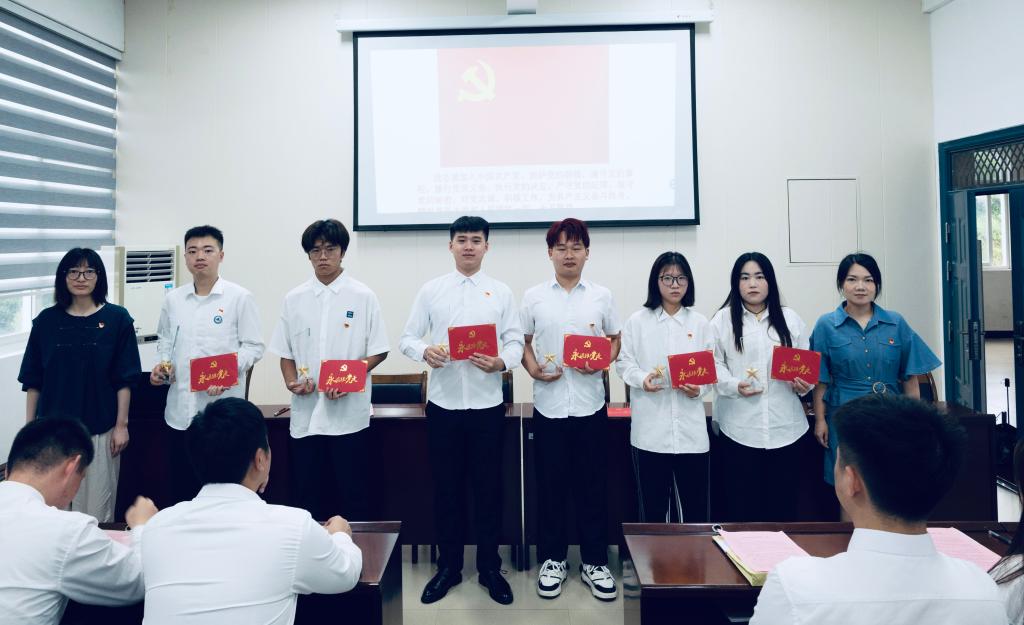 毕业季正逢53期预备党员入党一周年,党总支为毕业生党员开展了一场集体“政治生日”,助力毕业生党员奔赴新征程。学生第一党支部书记郑燕丽老师、学生第二党支部书记陈雅佳老师向毕业生党员送上政治生日贺卡和定制版纪念奖杯。“不忘初心酬壮志,风好正是扬帆时”,希望毕业生党员们胸怀祖国、爱校荣校,用青春之理想、青春之奋斗回应时代所需。