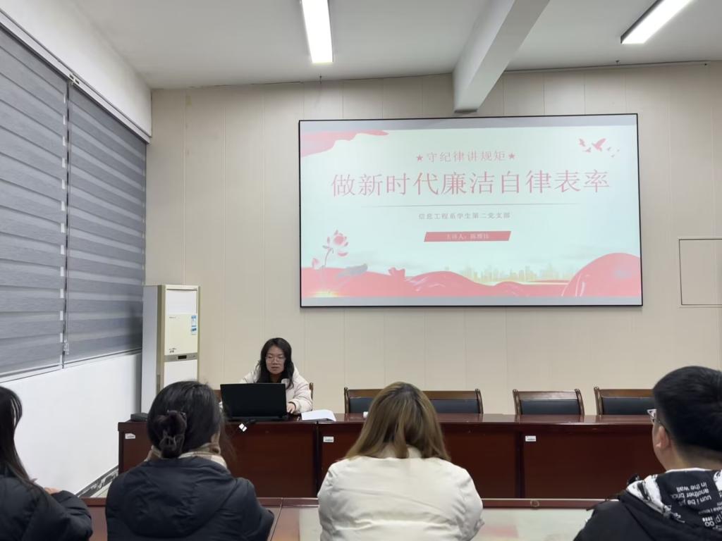 在党课中,陈雅佳老师还深度剖析了廉洁自律在新时代的核心价值,新形势下面对多元挑战,支部师生党员更要严于律己,以身作则,把廉洁自律的准则内化于心、外化于行,自觉培养廉洁文化,坚定理想信念,牢固树立正确的世界观、人生观、价值观。