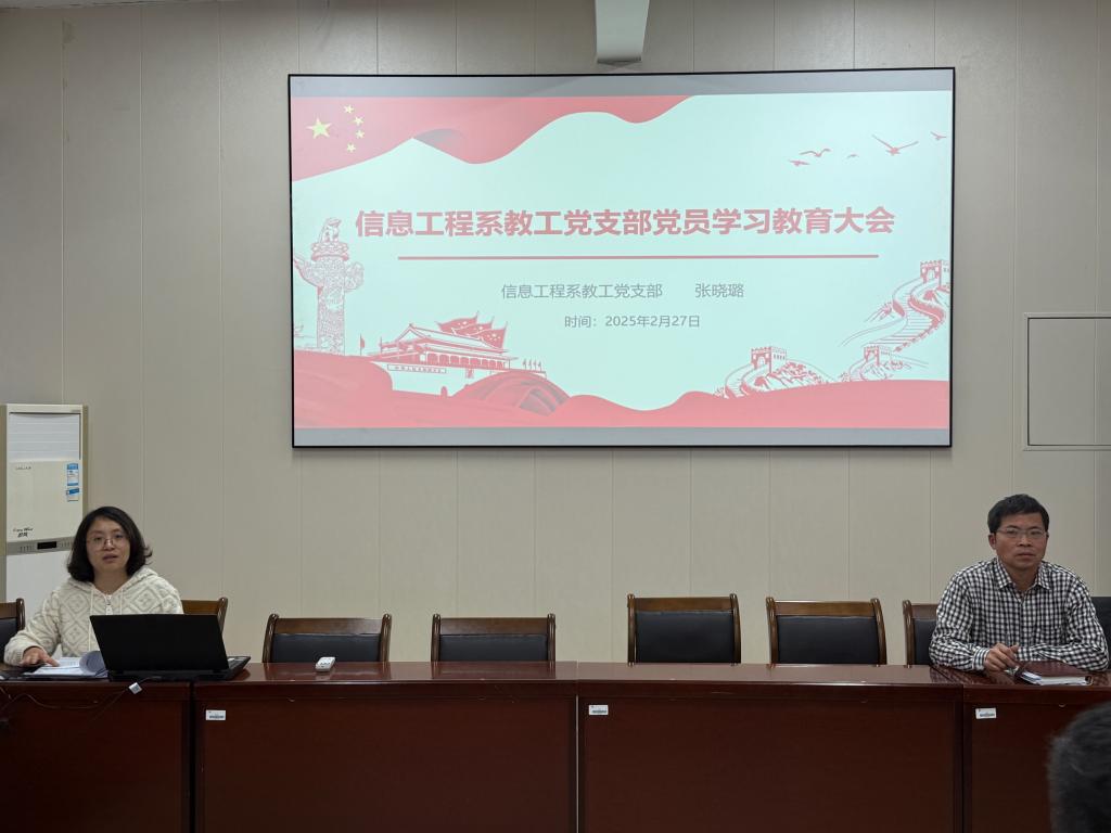 2025年2月27日下午,在信工楼408会议室,信工系教工党支部召开了党员大会,本次大会主要围绕2月份党员学习教育展开。会议由教工支部书记张晓璐老师主持,教工支部全体教工党员参与。