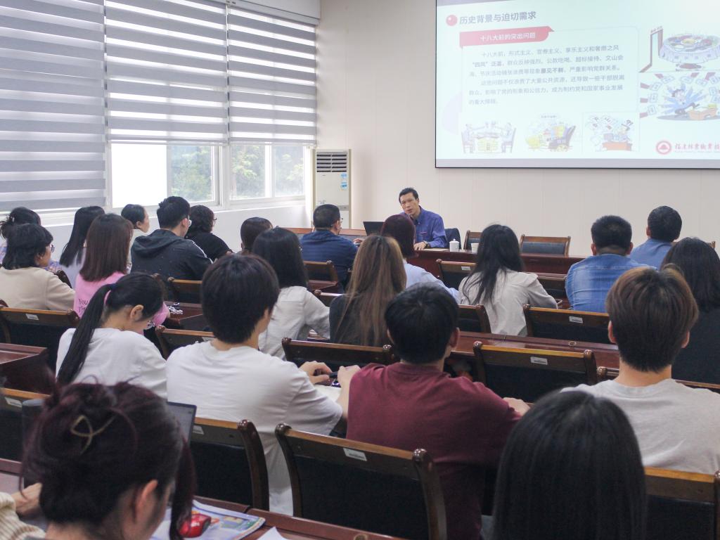 詹其仙书记在党课中,阐述了中央八项规定出台的时代背景,深入分析了中央八项规定的具体内容与中央八项规定精神的内涵与外延。同时詹书记通过展示数据与实例,列出中央八项规定实施后党风政风的显著变化,也警示大家警惕隐形变异“四风”问题和“疲劳厌战”心态等潜在风险。