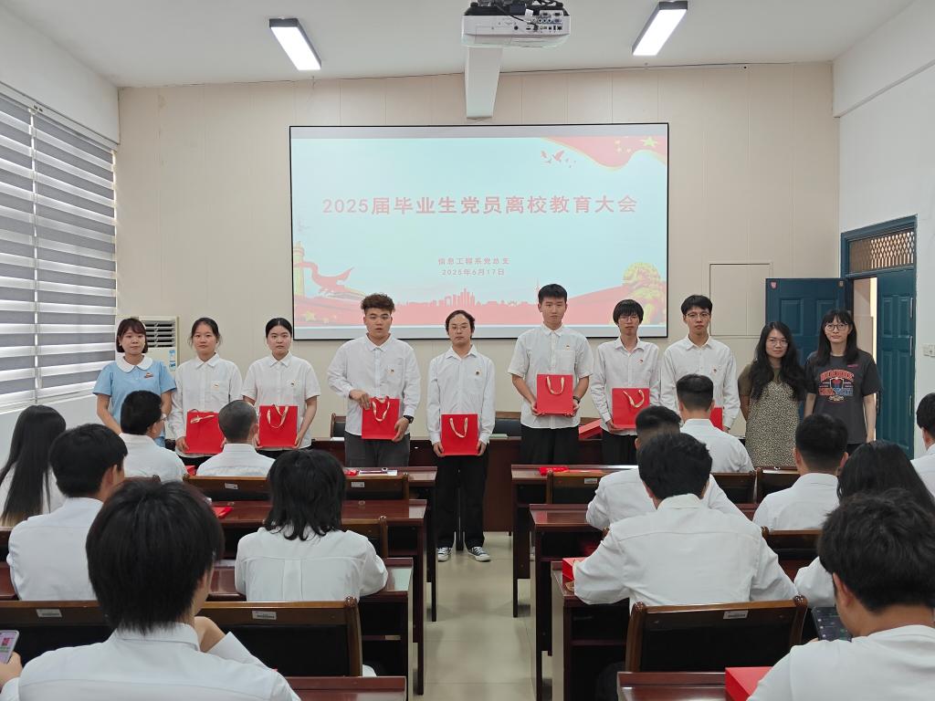 6月17日,信息工程系学生第一党支部、学生第二党支部联合开展“感恩奋进践初心·廉洁自律启新程”毕业生党员深入贯彻中央八项规定精神主题党日活动。支部书记郑燕丽、陈雅佳老师共同主持活动,通过表彰先进、重温誓词、纪实教育、感恩诚信等环节,为毕业生党员上好离校前的“最后一堂党课”。专职组织员谢婉欣、全体辅导员及毕业班党员参与活动。