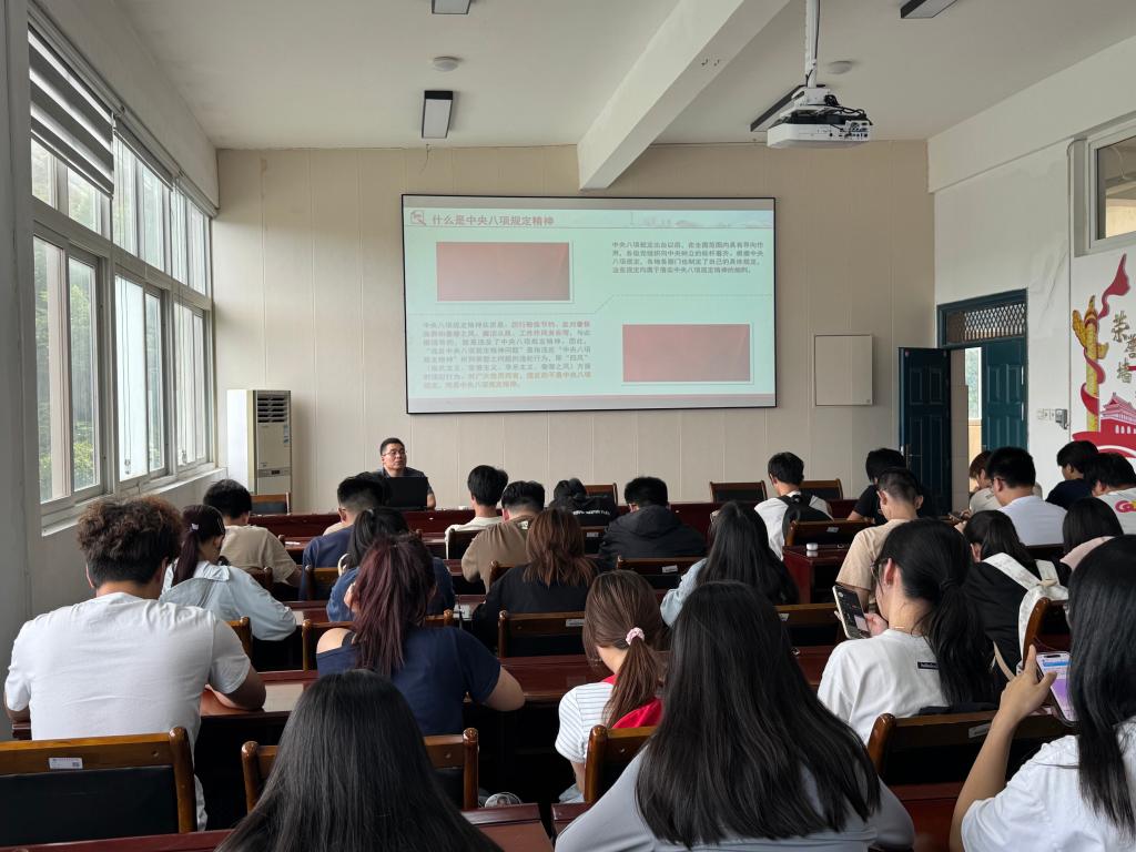 随后,华建祥书记深入阐述了各级党组织和党员在践行中央八项规定精神中的标杆作用。他指出,党组织要发挥战斗堡垒作用,党员要发挥先锋模范作用,以身作则,带头遵守中央八项规定精神,为青年学生树立良好榜样。同时,华建祥书记还鼓励学生干部和学生入党积极分子在校园中积极发挥引领作用,通过自身的实际行动,影响和带动更多青年学生参与到践行中央八项规定精神的实践中来。