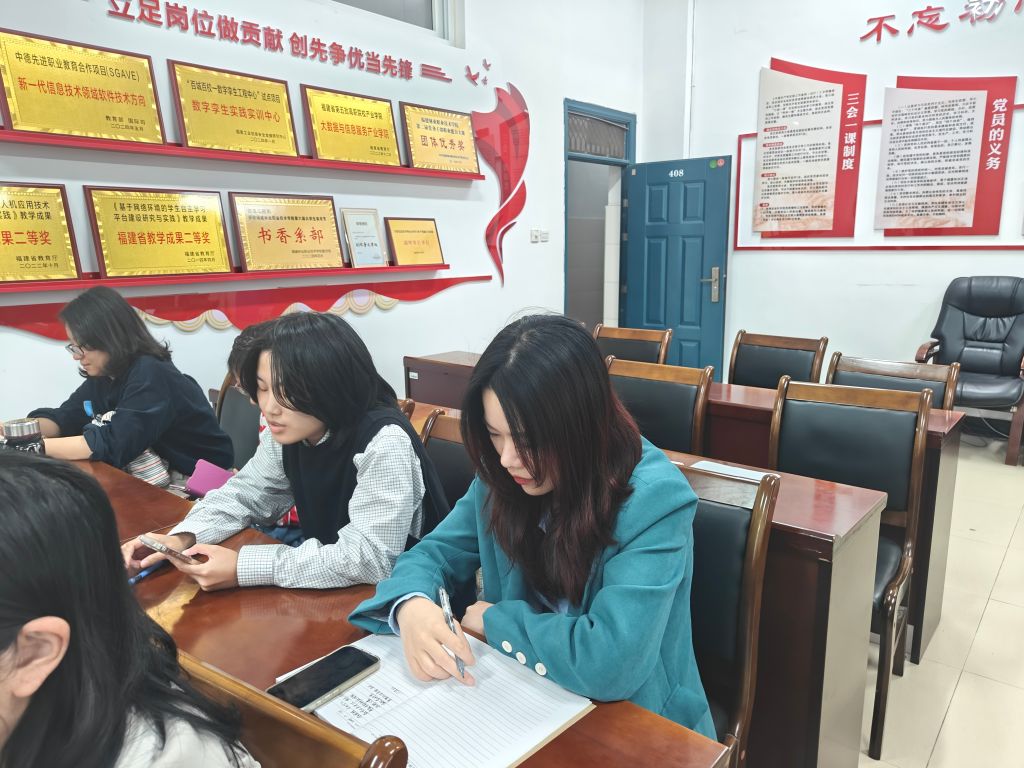 余慧婷老师在会议快结束时进行了总结,希望全体党员通过学习积累相关知识,把学到的内容真正融入教学科研、学生管理等实际工作中,认真完成各项任务,以扎实的行动为学院的学科建设、人才培养和整体发展贡献自己的力量。