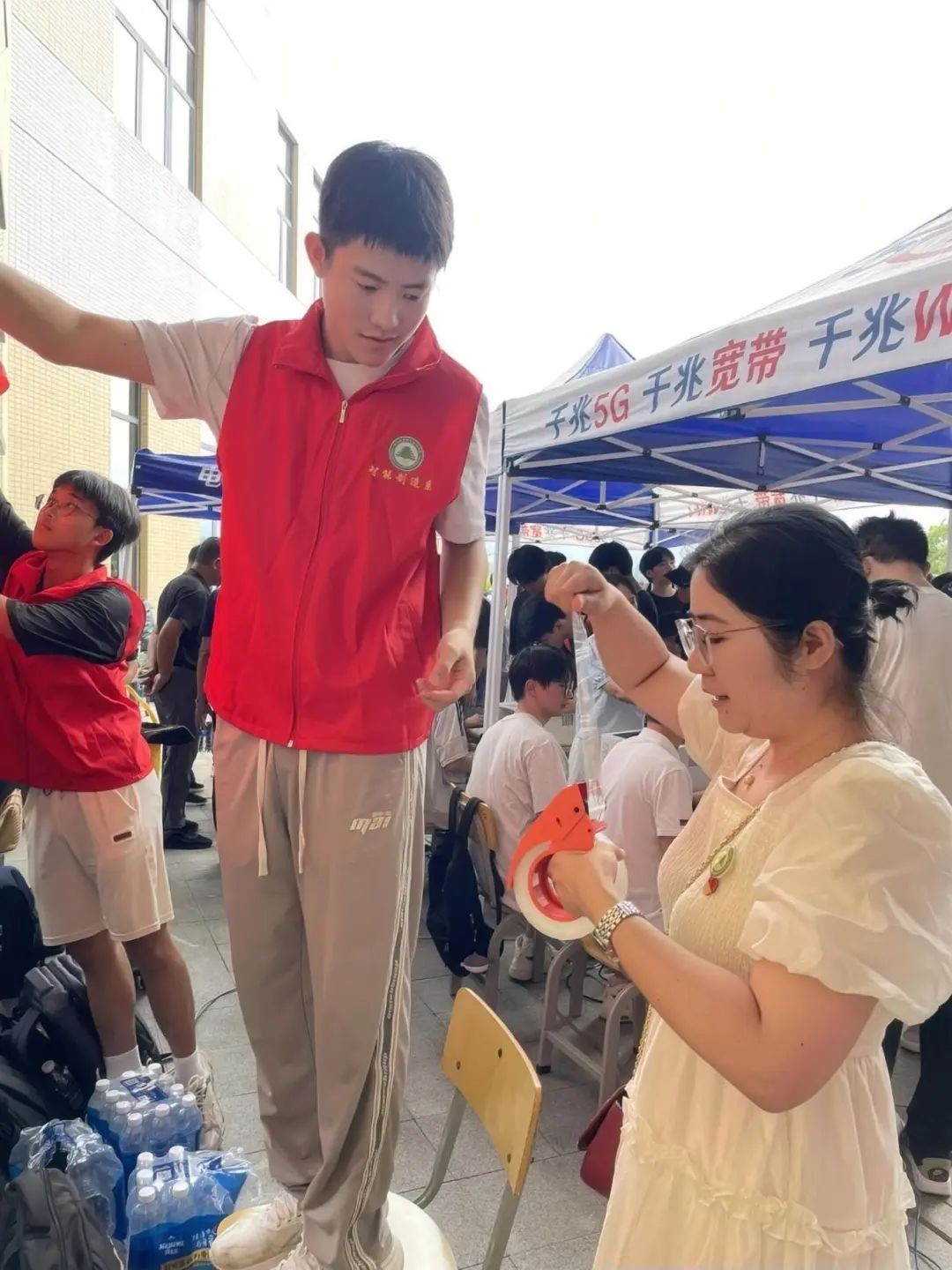 在宿舍点,师生党员和入党积极分子们以满腔的热情,细致入微地协助新生们完成宿舍入住的各项手续。他们主动介绍校园风貌与特色,热心解答宿舍分布、生活设施等问题,让新生们对即将开始的大学生活有了更全面的了解。这份贴心入微的服务,如同家人般的关怀,让远离家乡的新生们感受到了归属与温暖,仿佛踏入了一个充满爱与关怀的新家。