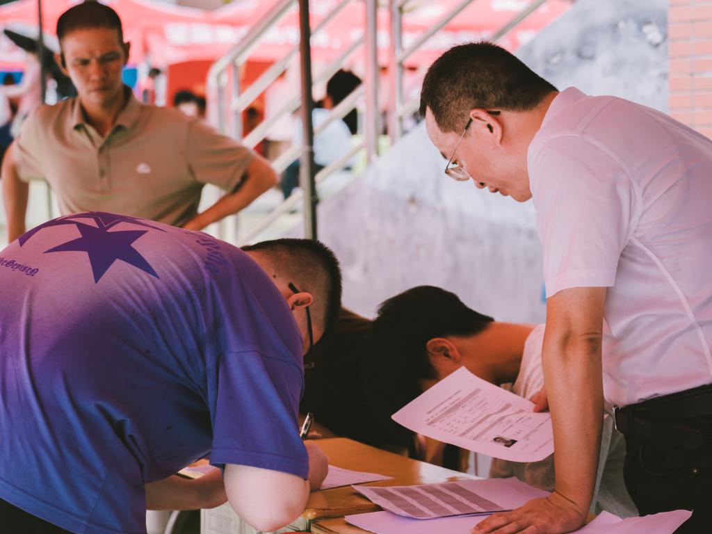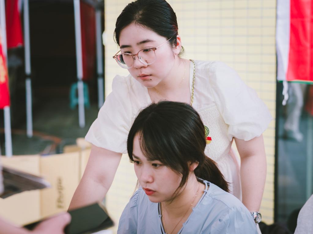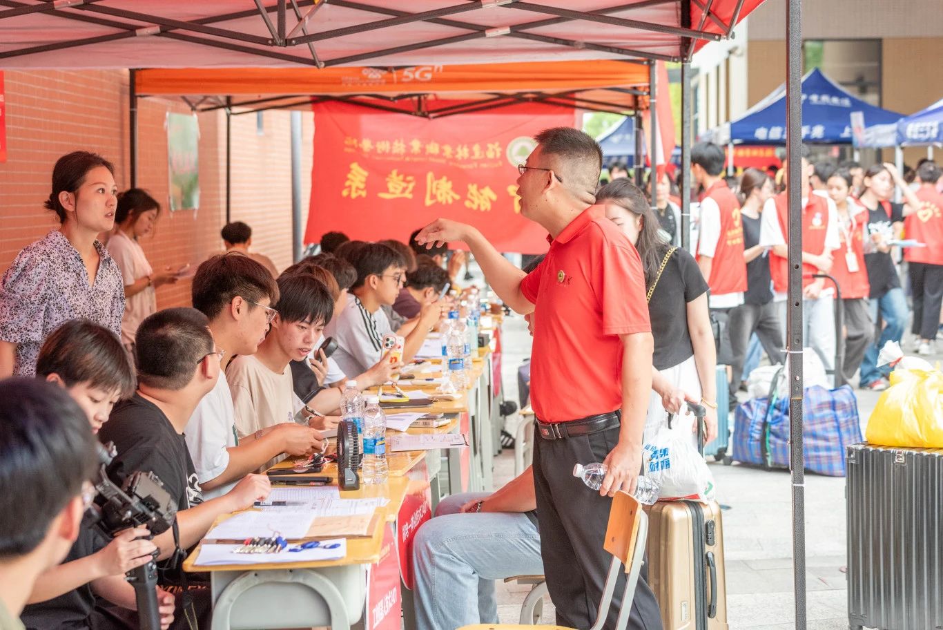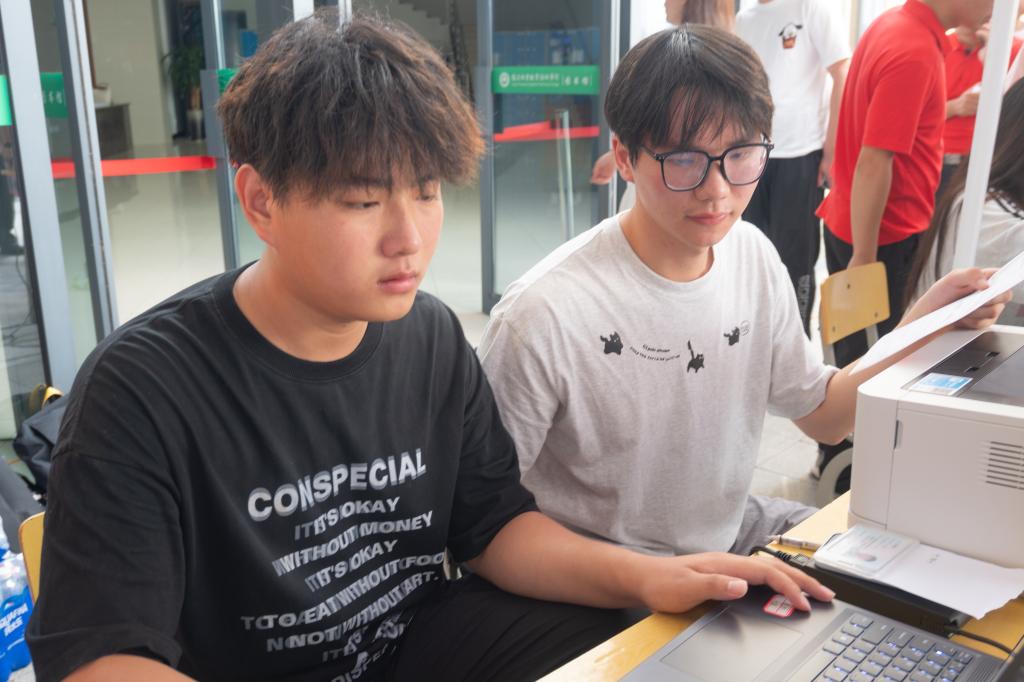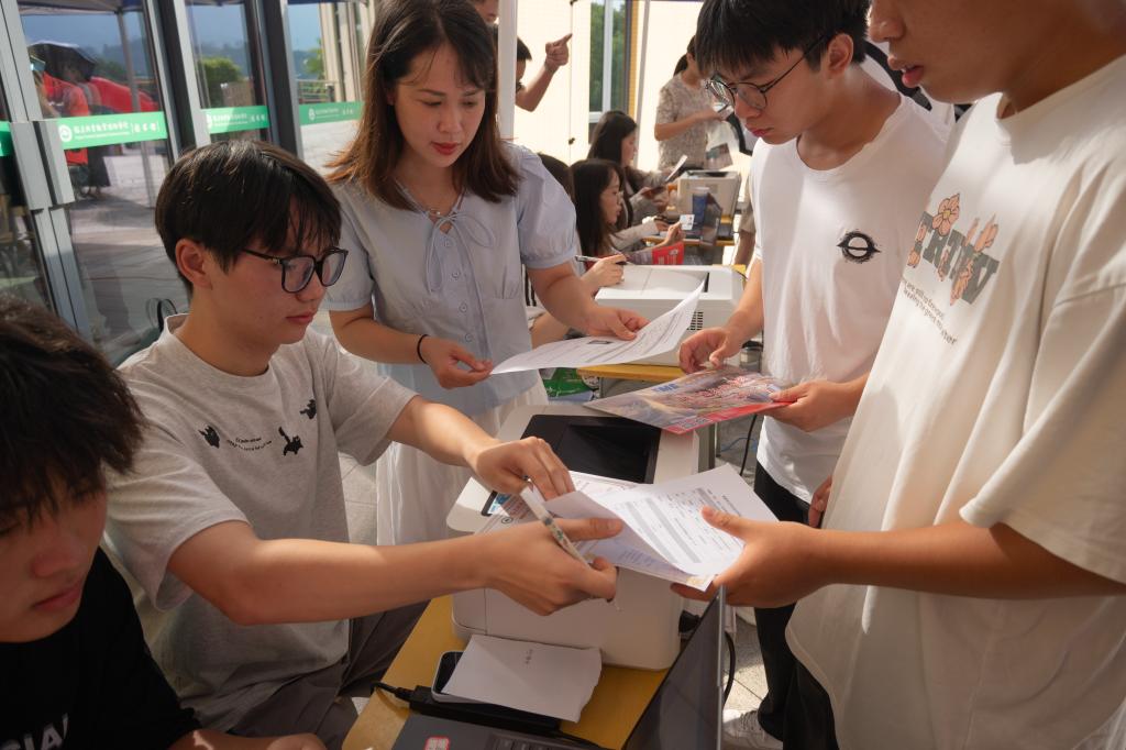 在注册点,志愿者们分工协作,有的化身活地图为新生们入校指引路线,有的细心审核新生的录取材料,有的耐心引导新生们完成注册流程,他们用耐心与细致,为新生们的大学之旅铺设了一条顺畅的开端之路。
