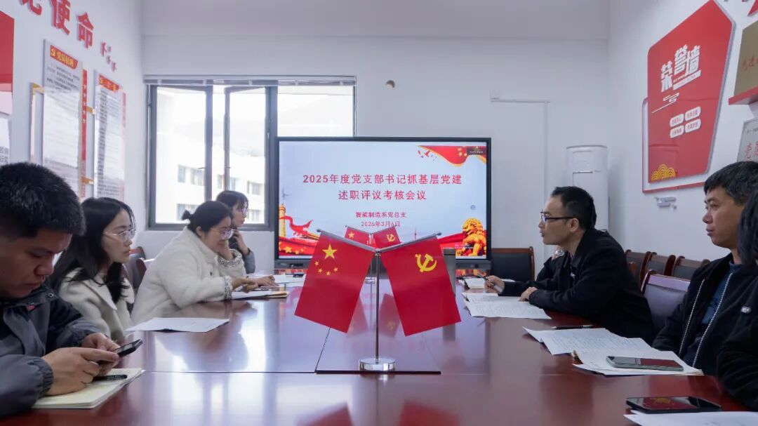 为进一步压紧靠实党支部书记抓基层党建工作责任,推动全面从严治党向纵深发展,2026年3月6日,智能制造系党总支召开2025年度党支部书记抓基层党建工作述职评议考核会议,系党总支委员、各支部书记参加了会议,会议由系党总支专职组织员张良英主持。